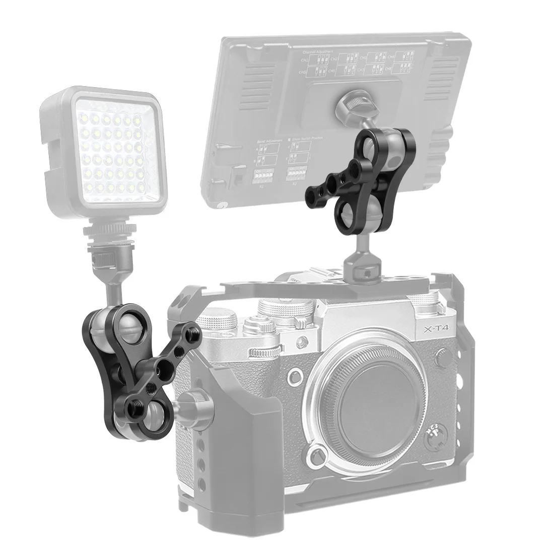 Особенности:Изготовлен из алюминиевого сплава, легкий, прочный и антикоррозийный, может вращаться на 360 градусов и вращаться на 80 градусов в горизонтальном направлении, имеет больше свободы для регулировки направления вспышки. Многопозиционное свободное соединение и фиксация, имеют больше свободы для регулировки направления вспышки. Несколько отверстий для расширения винтов 1/4 "3/8", отвечают требованиям к установке клиентов.