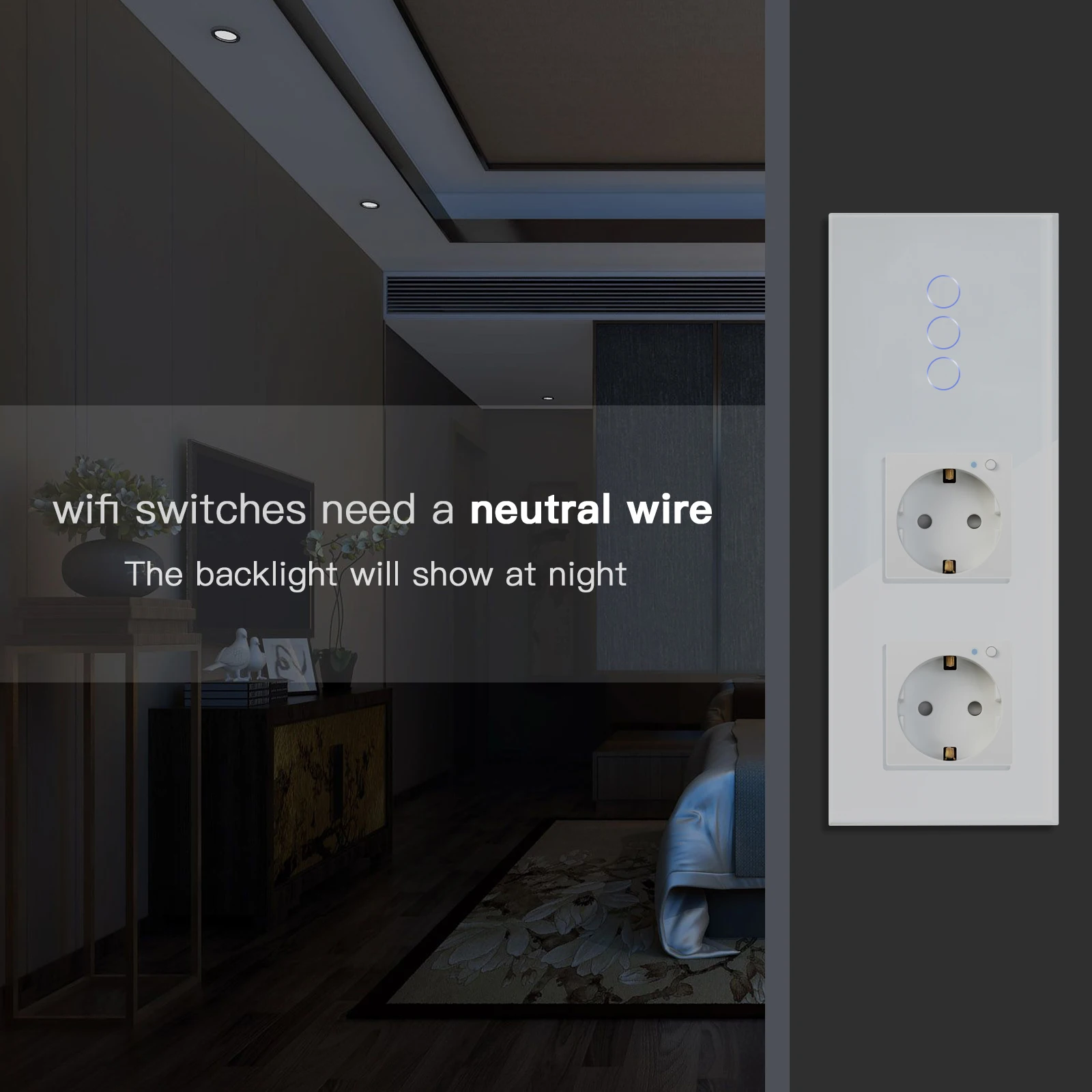 Сенсорные выключатели BSEED с Wi-Fi, 123-клавишный двухсторонний выключатель света, умная жизнь, двойные настенные розетки питания, управление через приложение Google Alexa Tuya