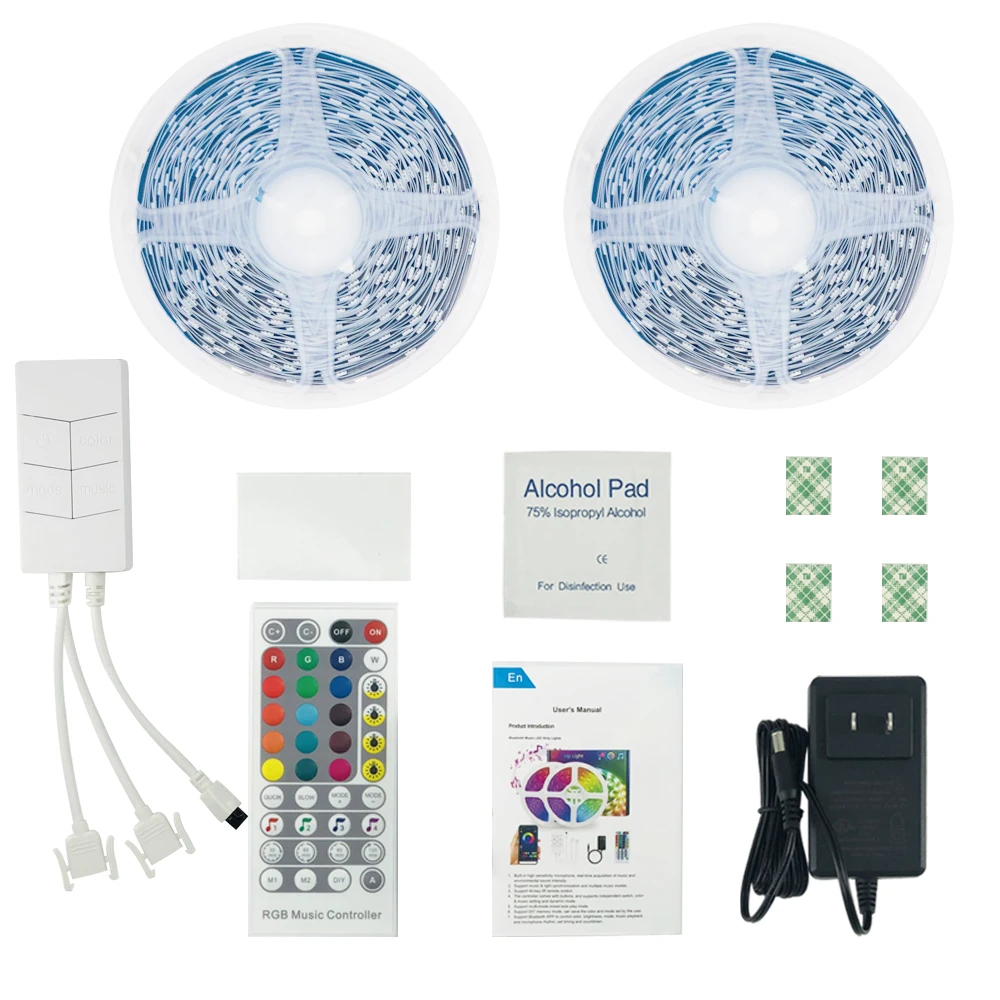 ① Загрузите приложение «DoHomeStrip» (доступно в Google Play и iOS app Store), вы можете настроить яркость, изменить цвета, включить/выключить светодиодный RGB ② Поставляется с чувствительным встроенным микрофоном в переключателе контроллера, огни будут пульсировать и менять цвета вместе с экологическим звуком и музыкой ③ Зарядное устройство поставляется с 40-ключ 4 музыкальный режим ИК-пульт дистанционного управления, чтобы контролировать светодиодный светильник полосы ④ Отделение для удостоверения личности-4-кнопка включения на шнур питания, чтобы изменить яркость цвета, режим воспроизведения музыки