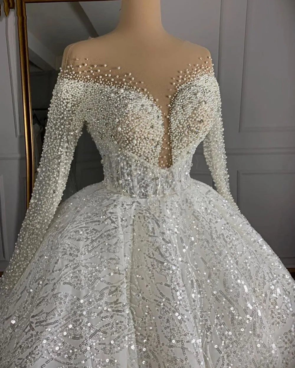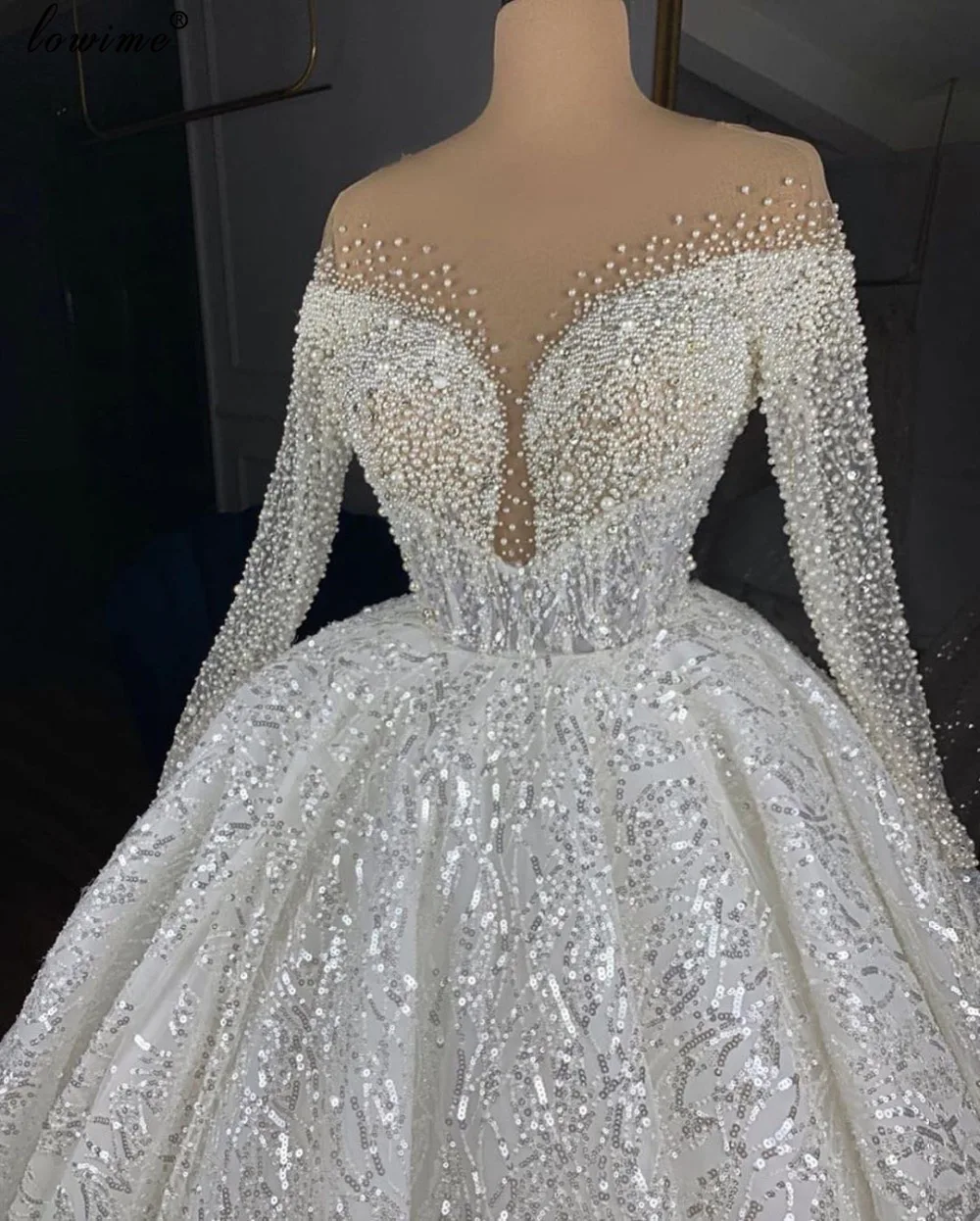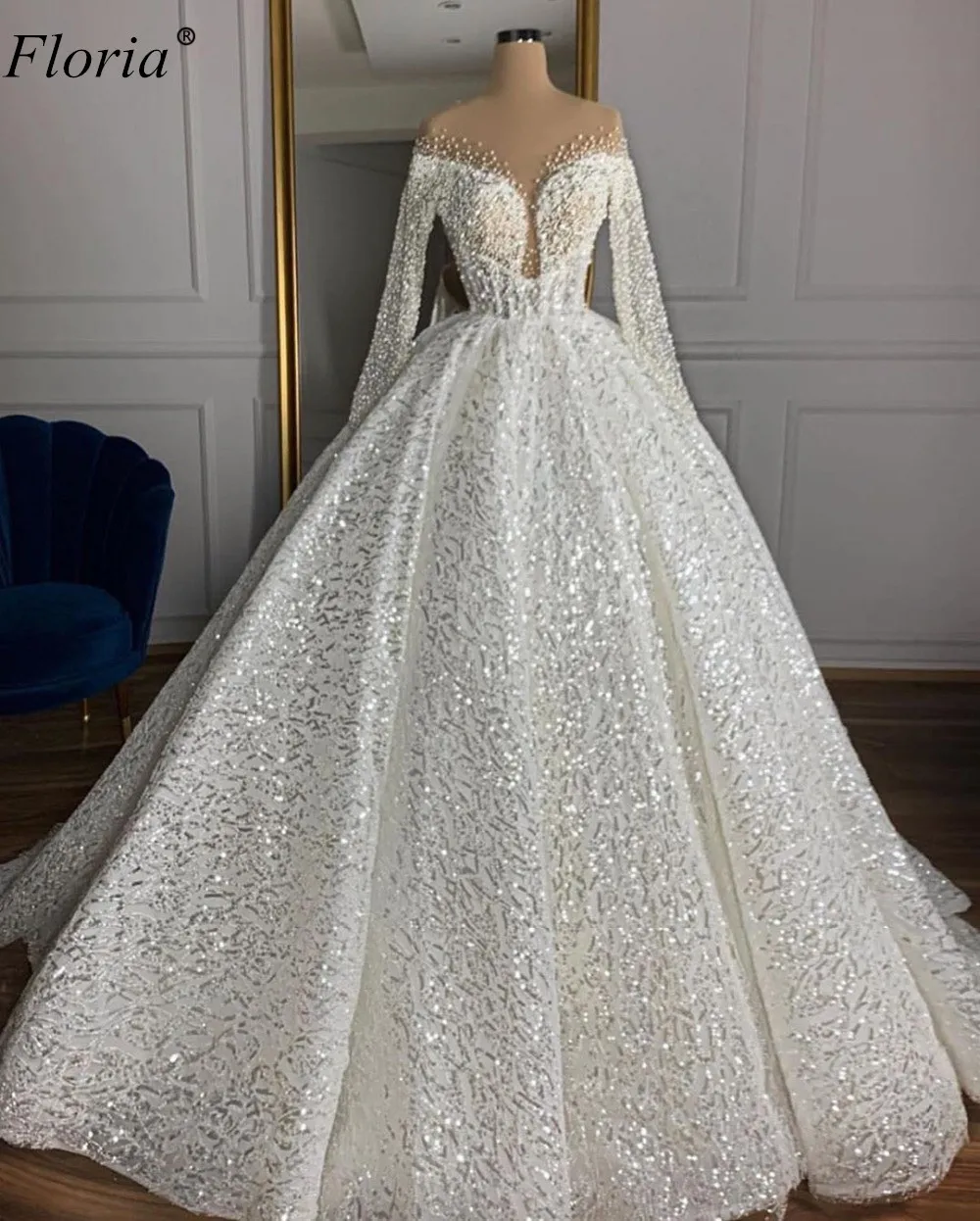 Floria Свадебная вечеринка платье жемчуг Длинные рукава Свадебное платье роскошная женская одежда для свадебной церемонии Женская Vestido De Noiva