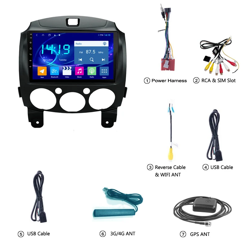 Автомобильная Умная Система Android 10, 4G + 64G, для MAZDA 2 Demio 2007-2014, GPS-навигатор, мультимедийный плеер