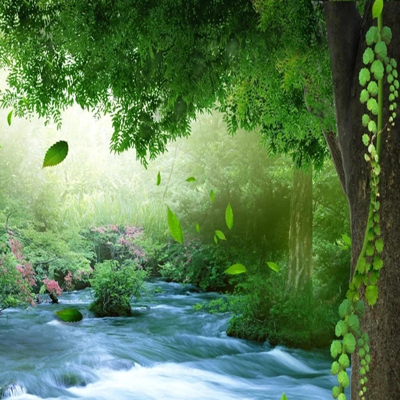 Самоклеящиеся обои на заказ, объемная Настенная картина с изображением водопада, леса, пейзажа, гостиной, телевизора, дивана, декоративное настенное украшение