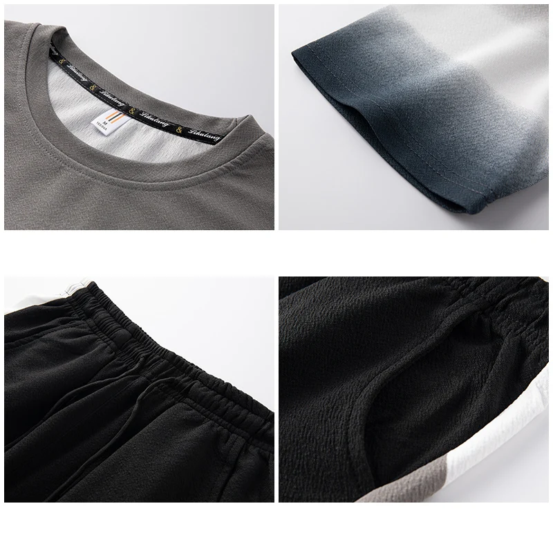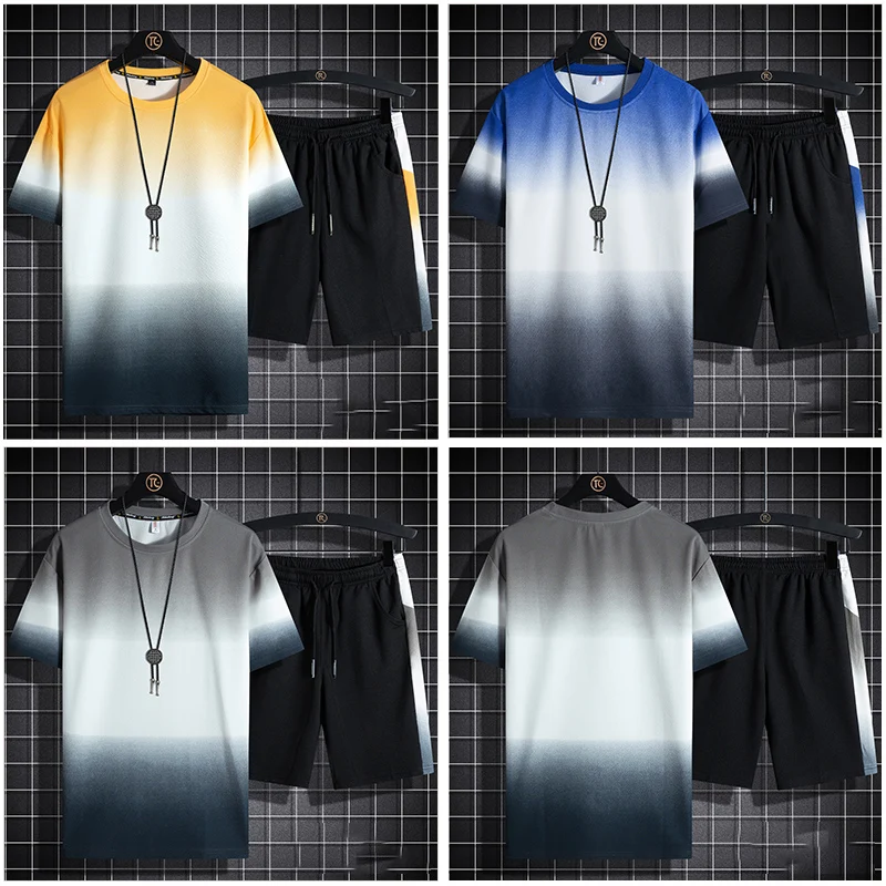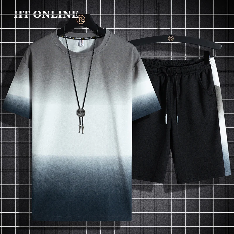 Мужской спортивный костюм из 2 предметов, Повседневная футболка с принтом и шорты с коротким рукавом, с градиентом, лето 2022