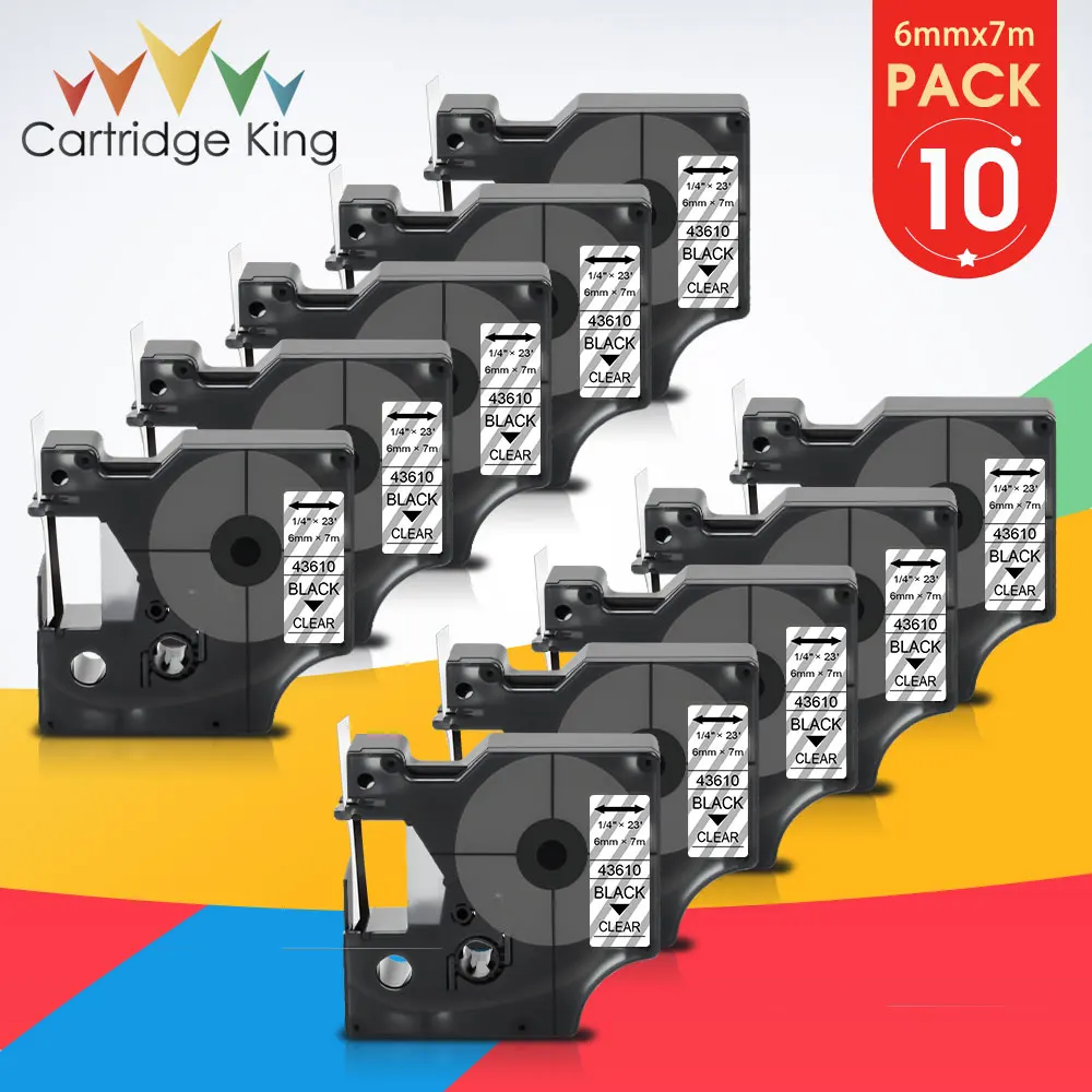 10PK 6 мм 43610 для Dymo D1 запечатанных лент для D1 маркировки черный на прозрачном совместимый для производитель Этикеток Dymo LabelManager PNP 160 280