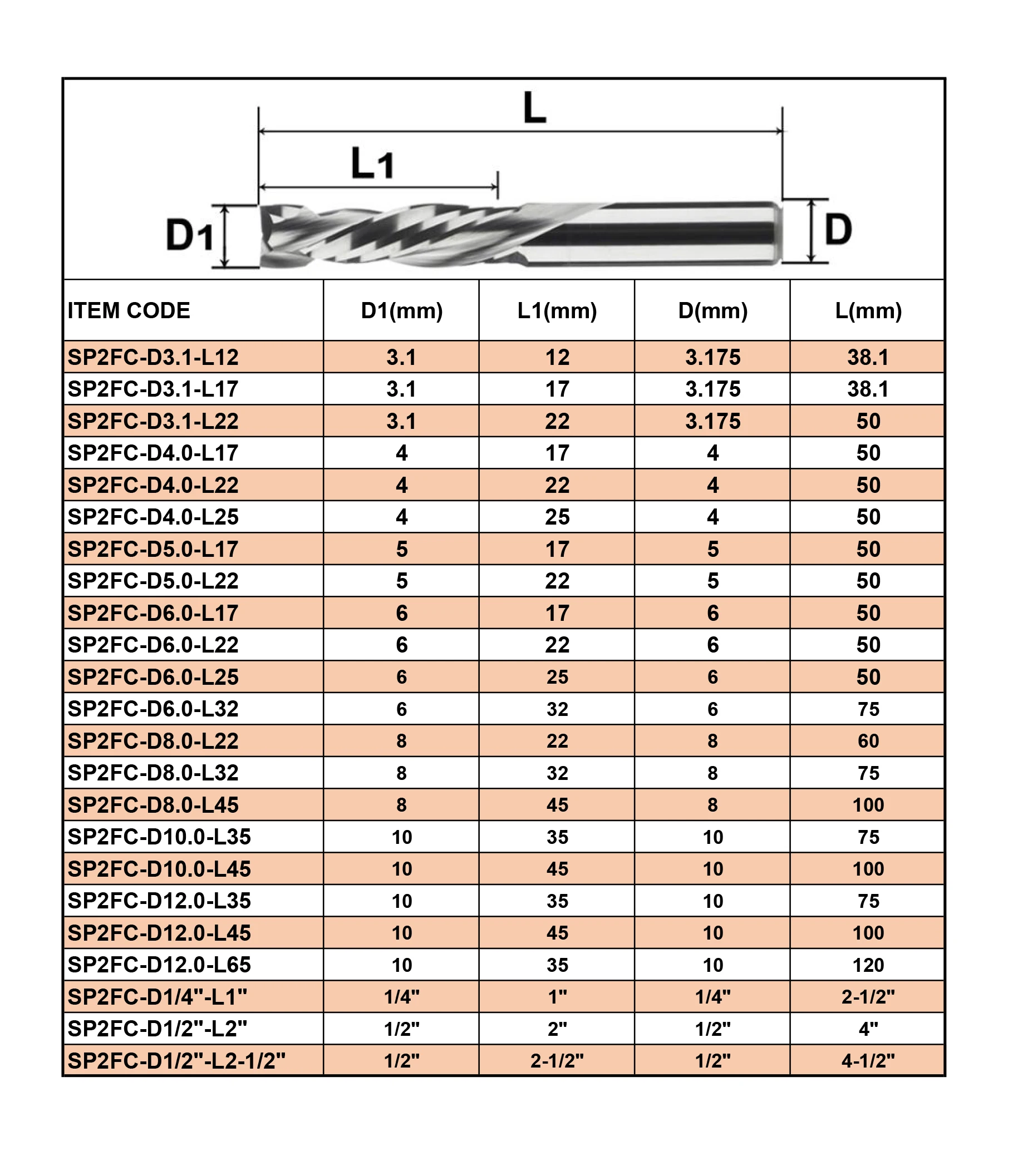 cutting diameter3.175mm, 4mm, 6mm, 8mm, 10mm