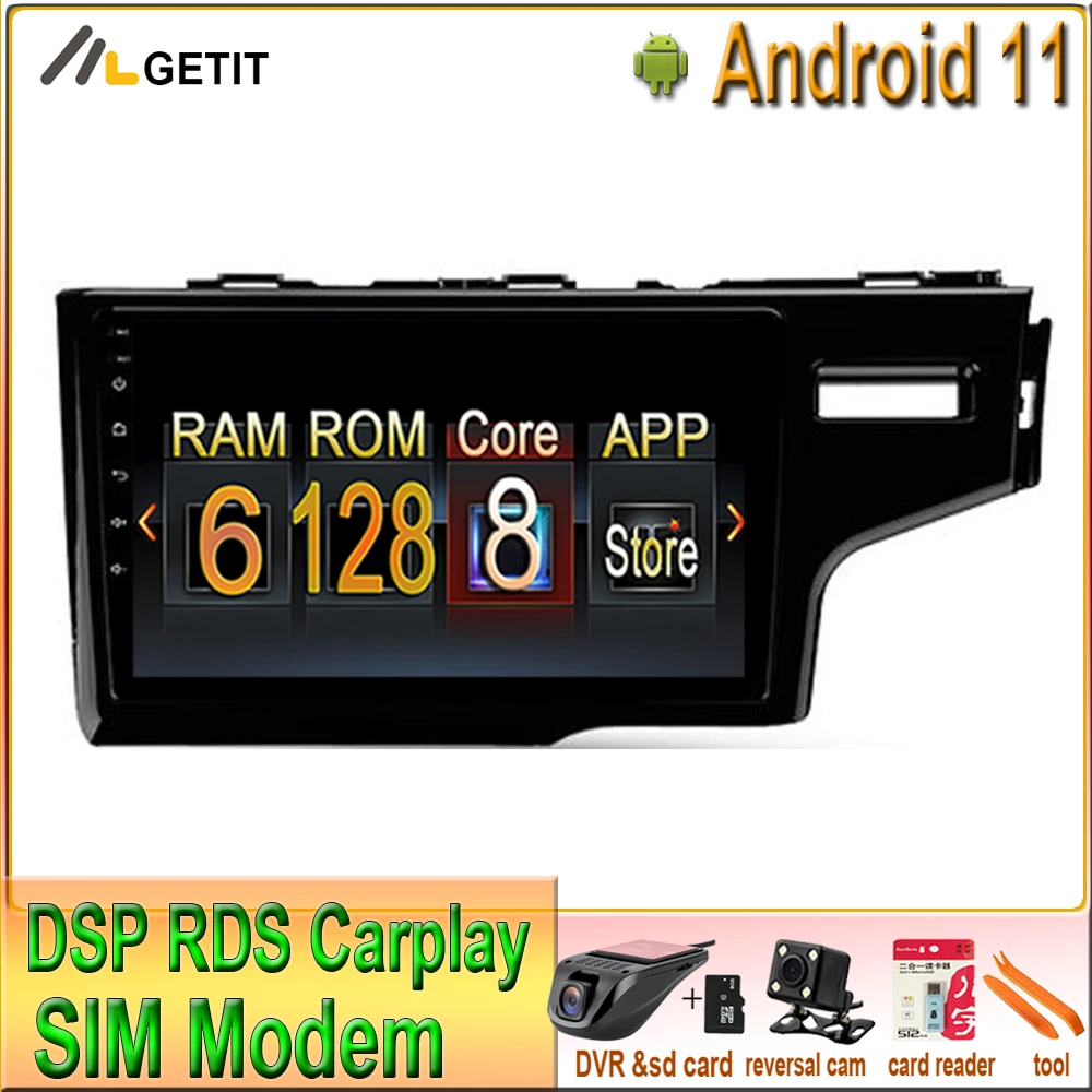 Автомагнитола carplay для Honda Jazz 3 2015-128, Android 11, 6 + 2020, подходит для 3 GP GK 2013-2020, с правым рулем, мультимедийный видеоплеер