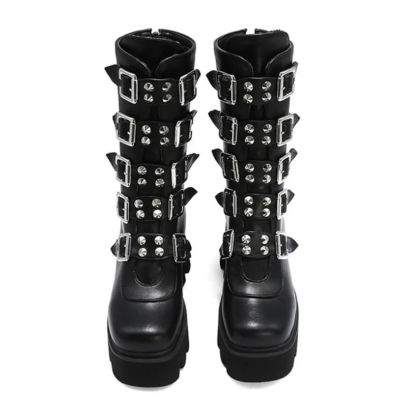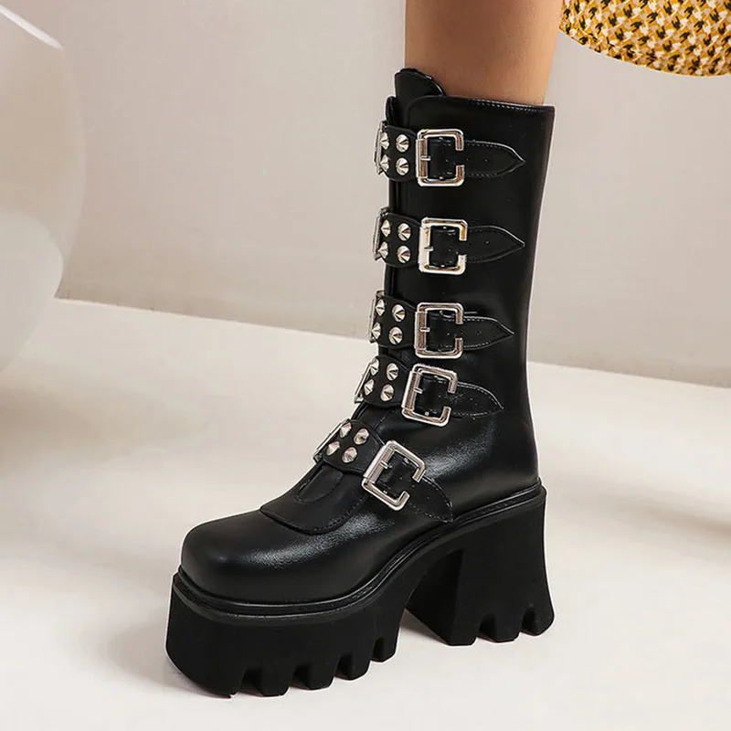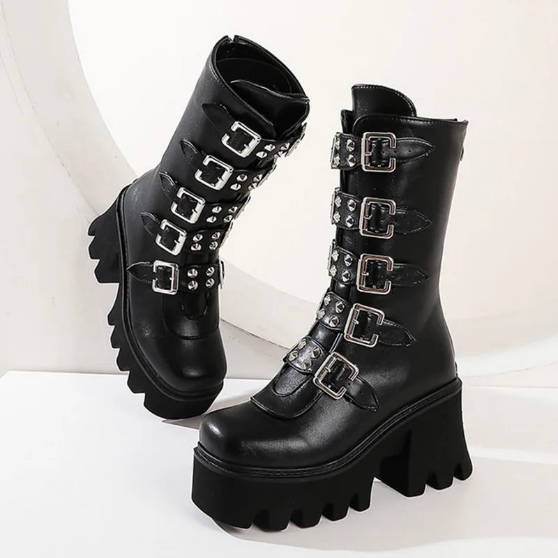 Женские ботинки в стиле панк-рок, с круглым носком, на платформе, на высоком каблуке, красивые низкие ботинки на молнии
