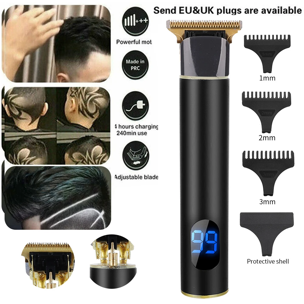 Smooth гладкий дизайн ручки, удобно держать и управлять, тонкий и маленький, удобный для удержания. Подвесное Т-образное лезвие позволяет свободно бриться в любом направлении. Подходит для жирной головы, гравировки, ретро прически, лысой головы✿ Профессиональный внешний Триммер-оснащен 4 расчески (1,5 мм, 2 мм, 3 мм, 4 мм), которые необходимы для того, чтобы удовлетворить различные длина требования. Вы можете легко настроить расческу на нужную высоту и вырезать прическу, которую вы хотитеEasy легко чистить-режущая головка может быть быстро промыта под проточной водой. Не помещайте электрическую машинку для стрижки волос в воду, позволяйте только промыть лезвиеStrong сильная и стабильная мощность, остроконечная режущая головка, мощная режущая способность, равномерное захват волос и резка волос, быстрая и экономичная функция, и контроль шума очень маленький, даже ребенок не проснется