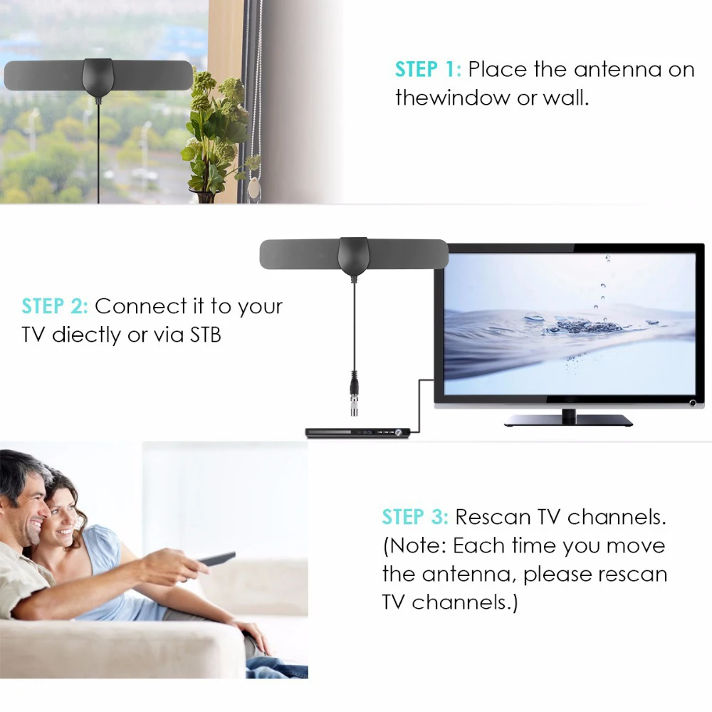Преимущество: вам больше не придется платить высокие ежемесячные счета по кабелю или спутнику, вы скоро сможете Смотреть Популярные национальные ТВ-сети и местные ТВ-шоу бесплатно!☑Бесплатно бесплатно на всю жизнь-никогда не платите очень дорогие кабельные или спутниковые сборы снова! Получите доступ к вашим местным новостям, погодным условиям, sitcoms, детским и спортивным программ, образовательных программ и т. д., получайте БЕСПЛАТНЫЕ телевизионные сигналы высокой четкости по воздуху, наслаждайтесь кристаллическими HD ТВ-программами, 720p, доступно 1080i, 1080p, 4K ATSC. Эта Антенна совместима со всеми видами ТВ конвертерных коробок и цифрового ТВ s/4K ультра высокой четкости.☑Легко как вилка, питание, сканирование-Подключение антенны к ant 'на задней части любого HDTV. Поместите антенну в нужное место, найдите каналы в меню телевизора, попробуйте некоторые места, Сканируйте каждый раз. Включает в себя 2 липучки и дополнительный длинный коаксиальный кабель 13,2 футов, так что вы можете расположить антенну там, где сигнал является самым сильным.☑Тонкая бумага-дизайн со съемным-сдержанным и ультра тонким усилителем, чтобы соответствовать вашему интерьеру или быть скрытым вне поля зрения. Усилитель включен для обеспечения дополнительного диапазона и максимального приема сигнала для большего количества каналов, если вы находитесь вдали от башни передачи. Очень * очень важно * Это усиленная ТВ-антенна. Если сигнал не может быть получен с помощью внешнего усилителя, снимите усилитель с антенны и повторите попытку телевизионной антенны с высшим материалом и дизайном: оригинальный пластиковый корпус всей сети, серебряная паста, импортированная из США, и все аксессуары являются чистыми, чтобы обеспечить свободный контакт. Мы должны быть сгруппированы застежку-липучку и две скорости воздушного присоски, что решает проблему 3 м жесткий клей для их решения. Высококачественный коаксиальный кабель прилагается для облегчения положения антенны и удовлетворения оптимального приема ТВ-сигнала. Новое поколение плоский дизайн Крытый ТВ антенна с только 0,02 дюйма толщиной. Особенно совместим с HDTV различных цифровых эфирных радиоприемников (DVB-T, ISDB-T, DMB-T/h, ATSC) и DAB/FM. Особенности: прием телевизора зависит от экологических факторов, мы не можем гарантировать прием в любых условиях. Для получения дополнительной информации см. Веб-сайт цифрового телевидения. Обратите внимание: фактический интервал приема может сильно зависеть от вашего расстояния и местоположения. Области с большими препятствиями, такими как долины, горы и т. д. это уменьшит Эффективный диапазон. Всегда отсканируйте каналы после перемещения внутренней антенны, результат может быть лучше. Держите антенну вдали от источников помех, держите антенну вдали от этих больших устройств энергопотребления, таких как кондиционер, Лифт, фен, микроволновая печь и т. Д. Вы можете Узнайте, какие каналы доступны в вашем регионе на этом сайте: посылка: 1 внутренняя антенна цифрового телевизора 1 усилитель антенны для 1 универсального разъема 1 Руководство пользователя