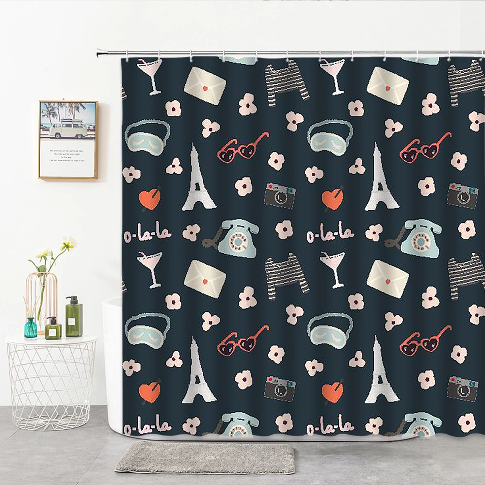 Водонепроницаемая шторка для ванной с 3D-принтом и крючками