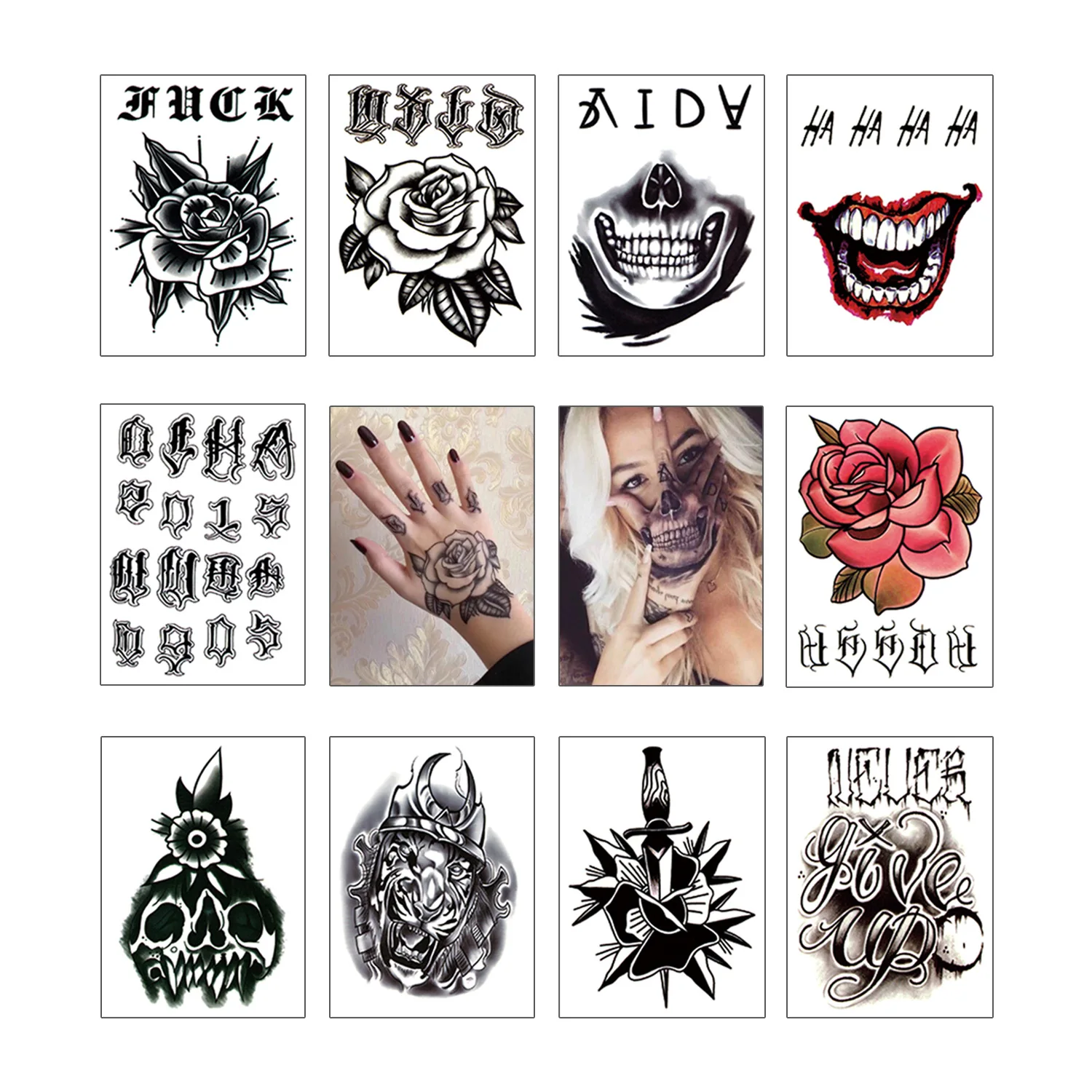 Водонепроницаемая Временная тату-наклейка цветок Роза письмо поддел...