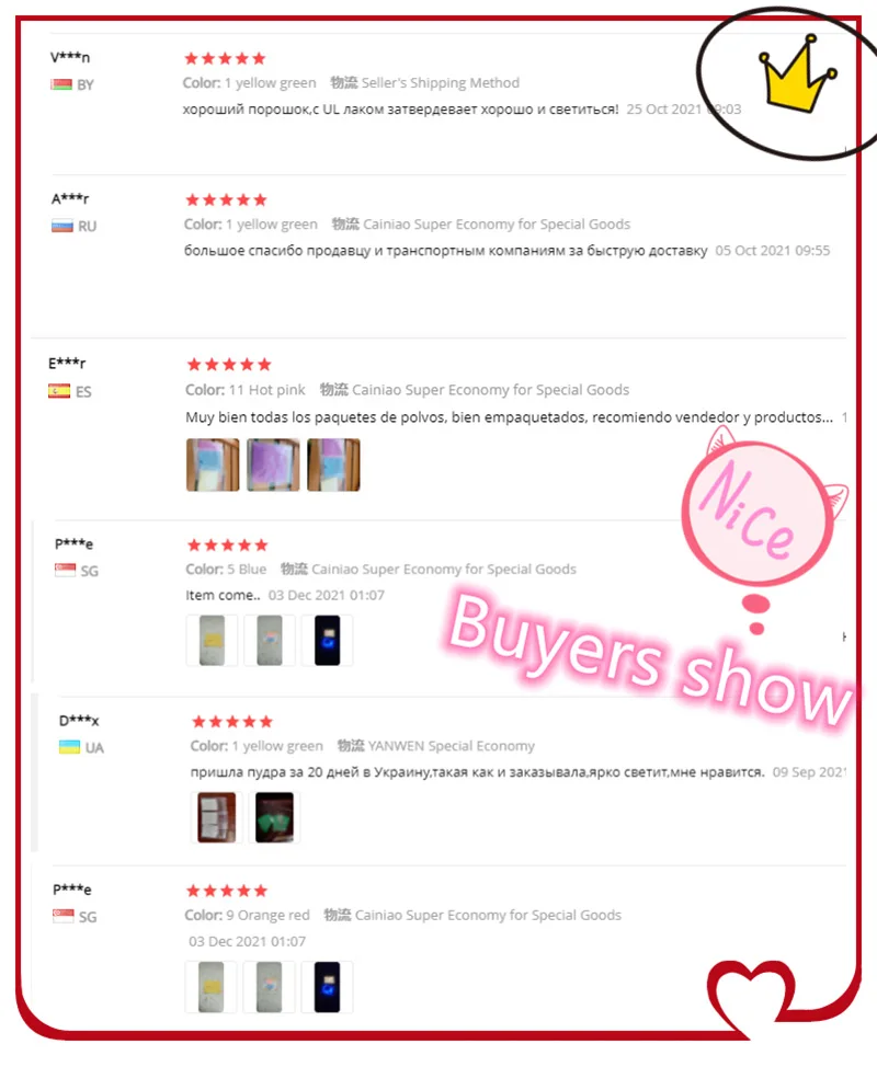 Заказала 25 июня,пришло 21 сентября :).А так,все нормально,порошок светится :).