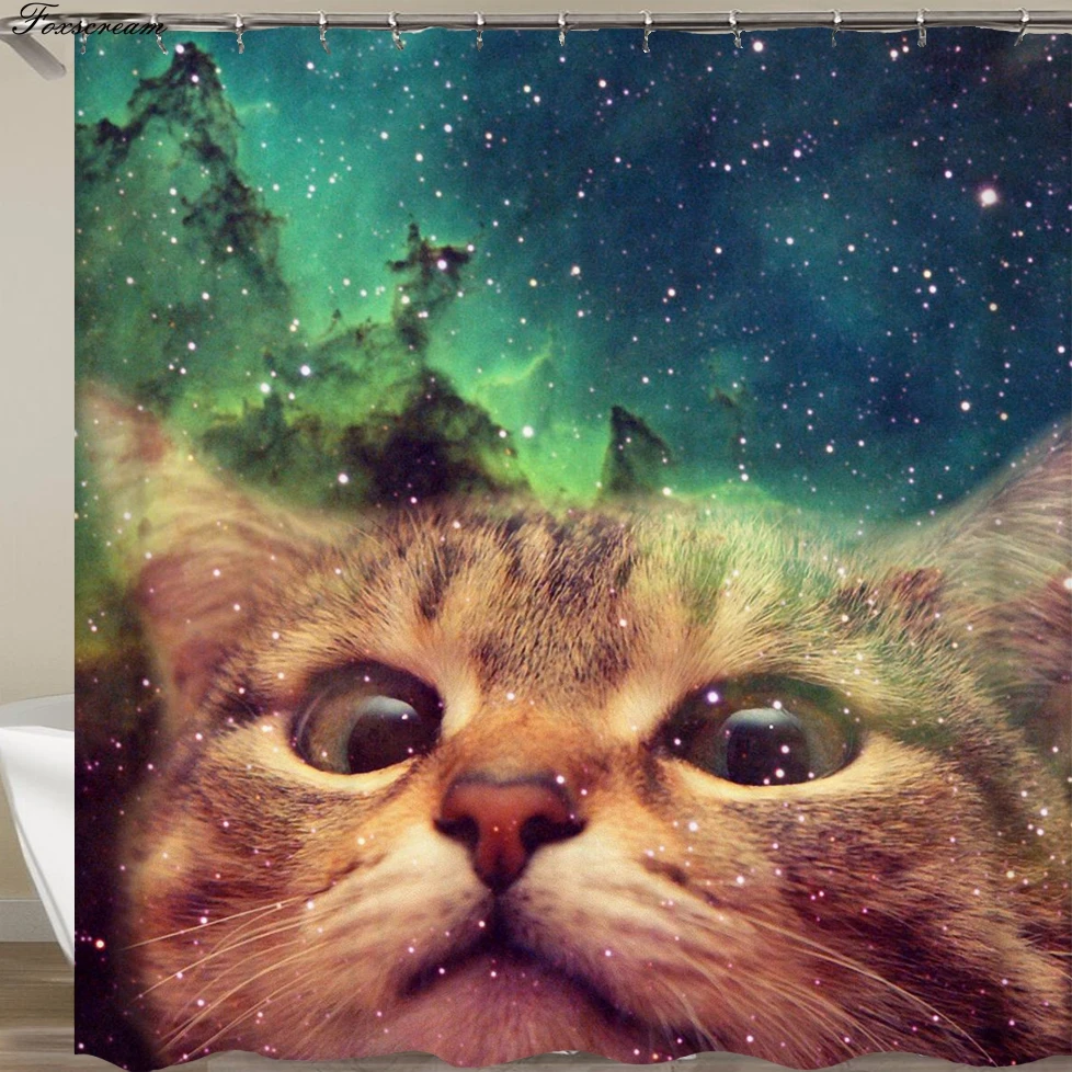 Водонепроницаемая шторка для душа в ванную, занавеска для душа 3D из ткани с рисунком кота, забавная занавеска для душа или коврик