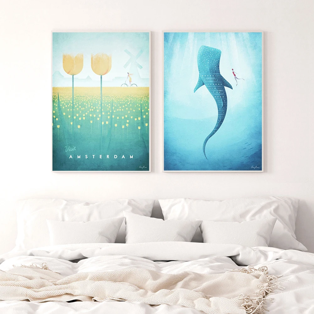 Постер для путешествий с изображением знаменитого города, гавайский Берлин, Амстердам, пейзаж, холст, живопись, настенные картины для гостиной, домашний декор