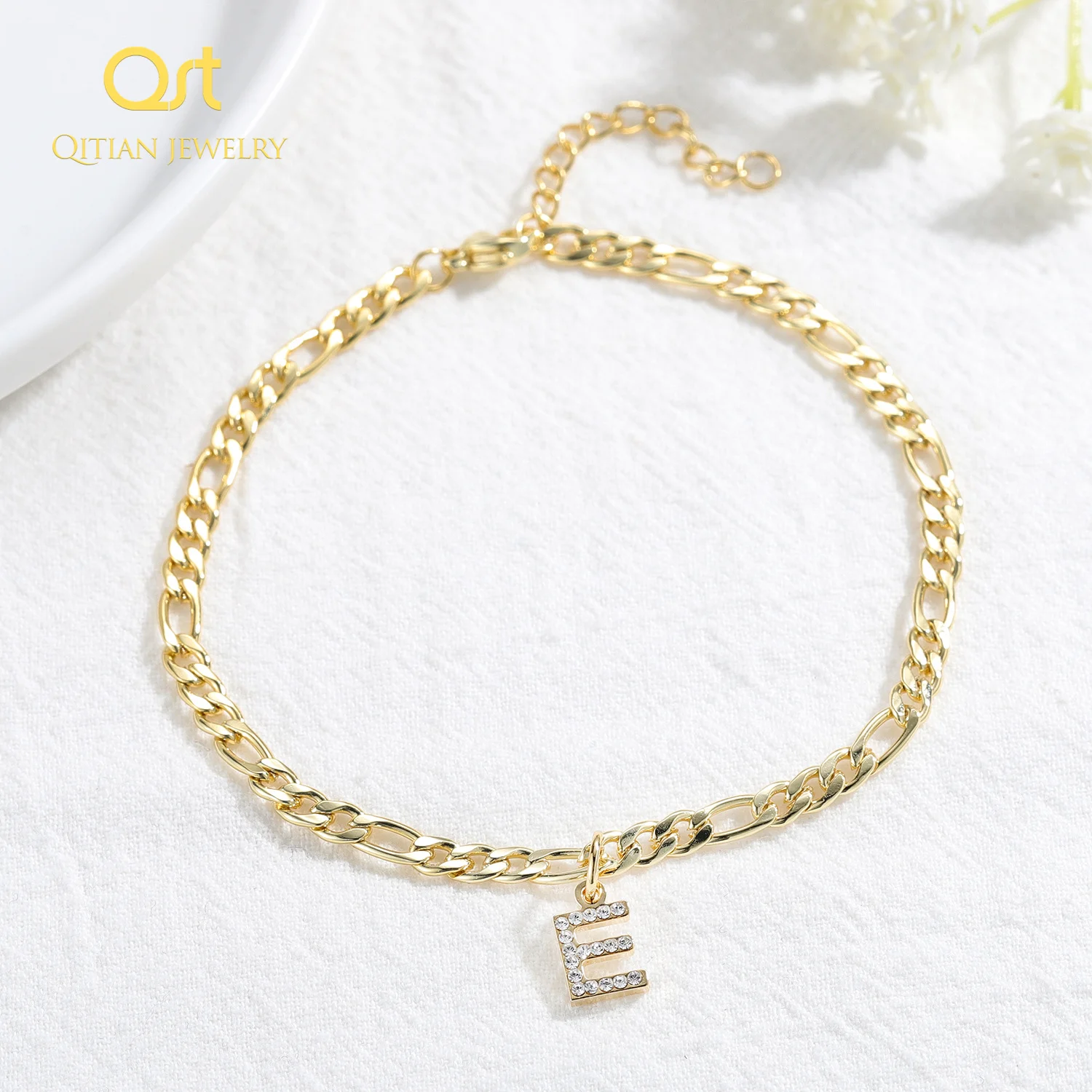 Крошечный A-Z Начальная буква Сандалеты с перепонкой на лодыжке для Для женщин Нержавеющаясталь золотой алфавит кубинской анклет (браслет на ногу браслет Бохо ювелирный подарок Bijoux (украшения своими руками)