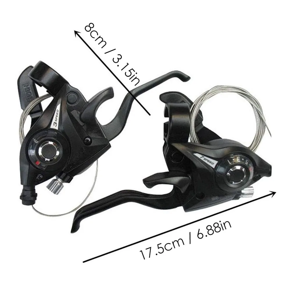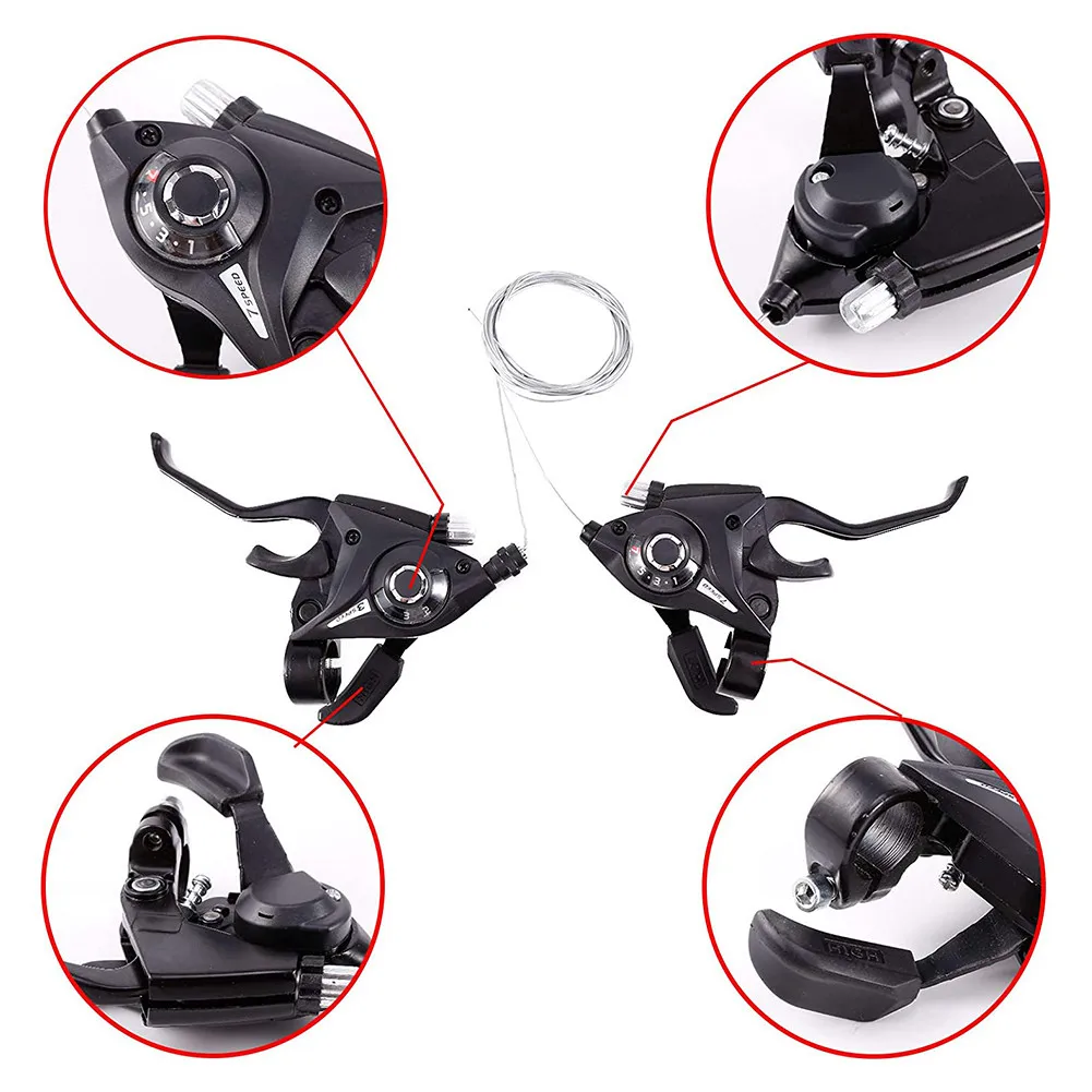 1. Подходит для руля диаметром 22,2 мм. 2. Простота установки: подходит для всех видов велосипедов с 21/24 скоростью. Рычаг переключения позволяет вам наслаждаться разным опытом езды. 3. V-тормозные системы: совместимы с v-тормозными системами и кабельным дисковым тормозом. (Механический дисковый тормоз.) 4. Ручка триггерного типа: Алюминиевый Рычаг и тормозные кабели изготовлены из нержавеющей стали с хорошим качеством. 5. Обратите внимание: пожалуйста, используйте правильный метод установки, в противном случае продукт может не работать должным образом. 6. С функцией переключения передач и тормоза, рычаг переключения передач прост в использовании. 7. Рычаг переключения/тормоза подходит для велосипеда передней 3 и задней 7/8. 8. Внутренний диаметр монтажных отверстий ручки: около 22,2 мм. 9. Подходит для горного велосипеда, дорожного велосипеда и так далее. 10. Вес: 360 г/пара
