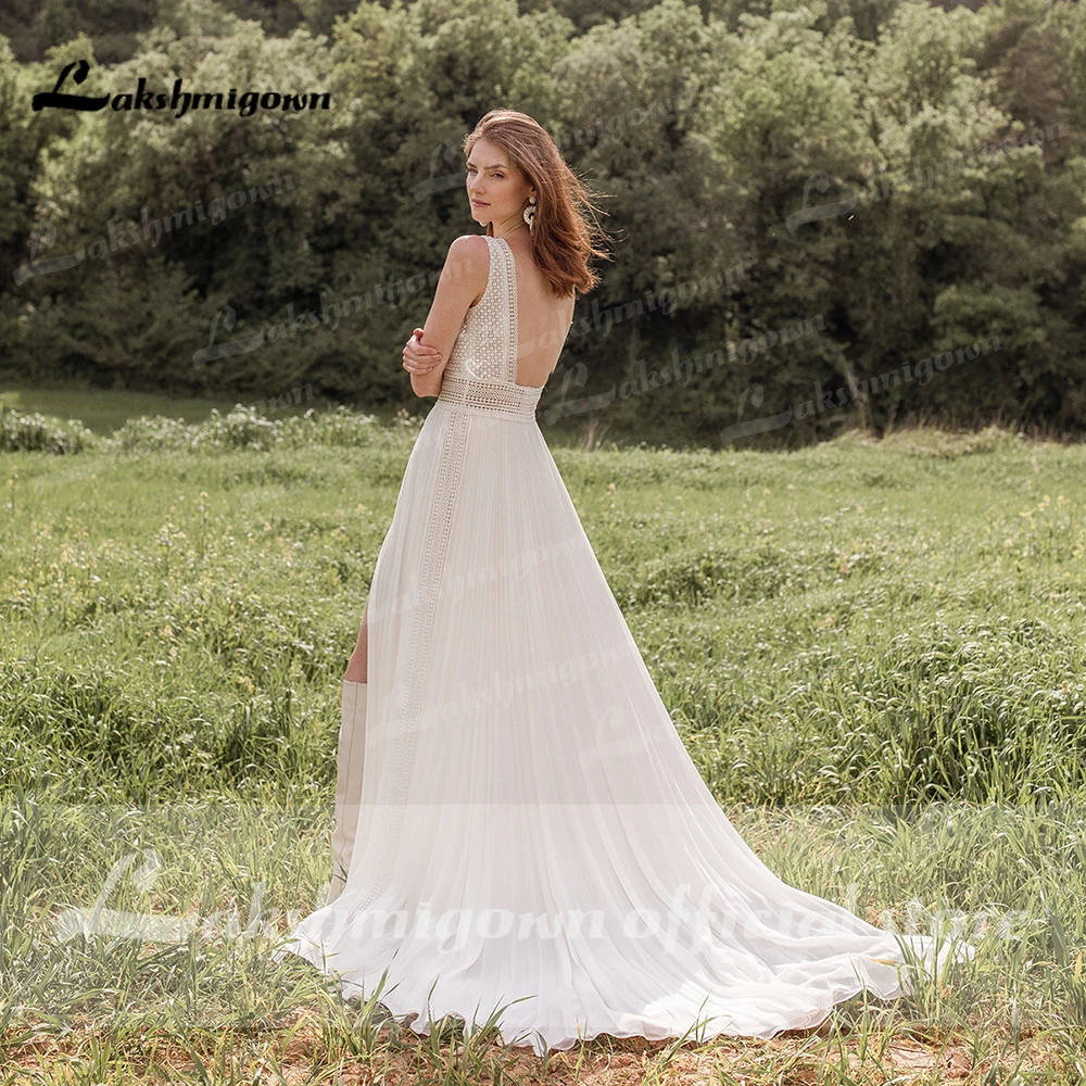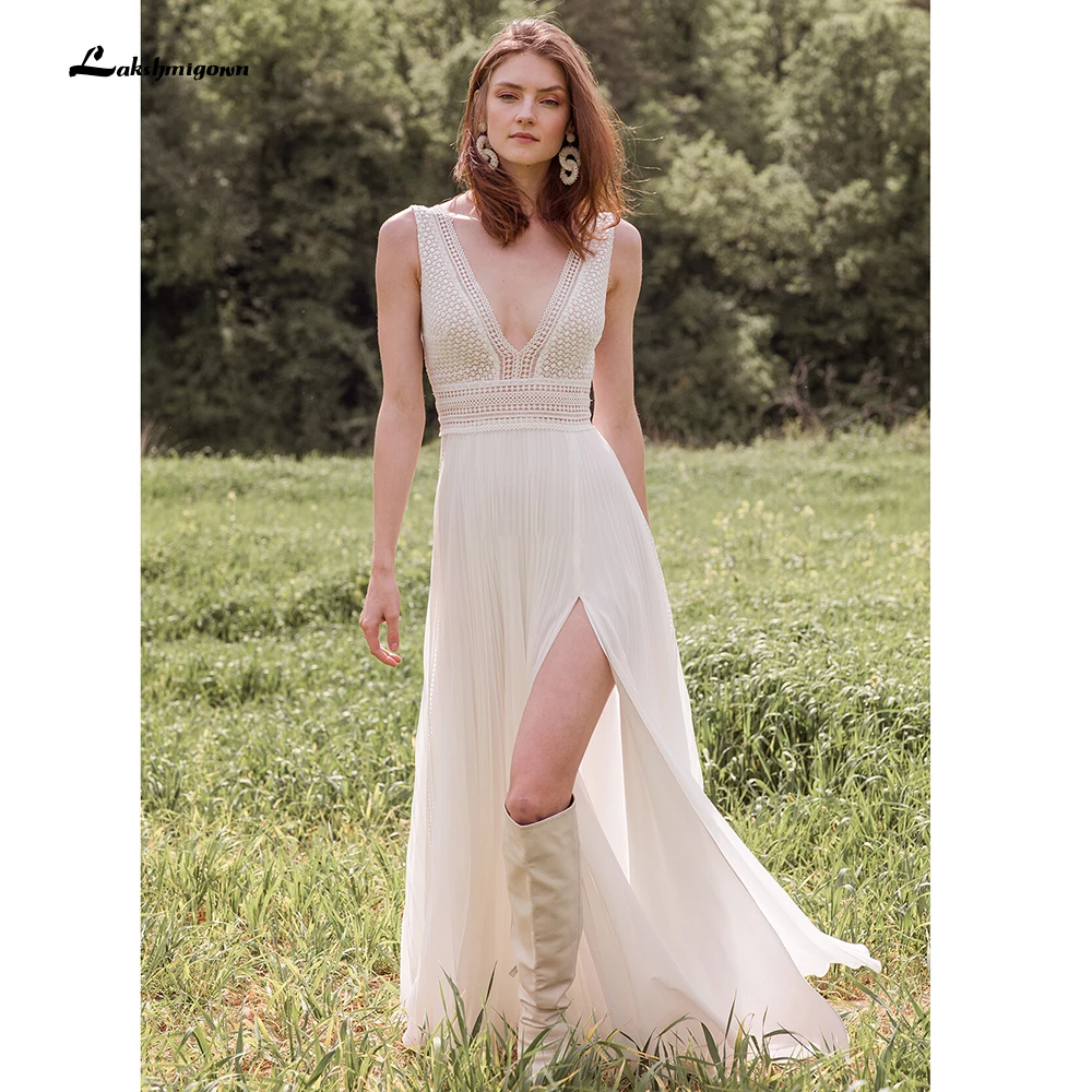 Простые Свадебные платья 2021 кружевное платье с v-образной горловиной в стиле Бохо садовое свадебное платье высокого Разделение кружева Bocide свадебное платье плюс размер халат вечер mariage