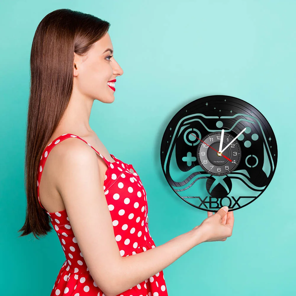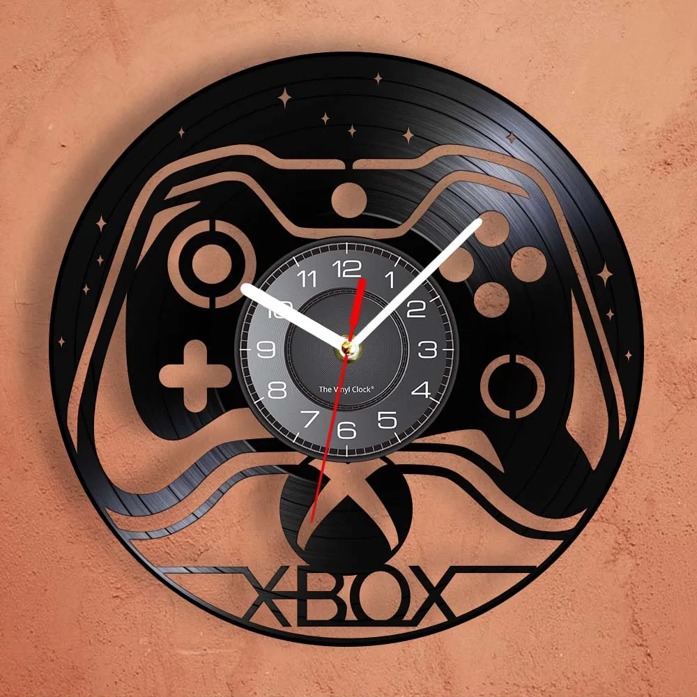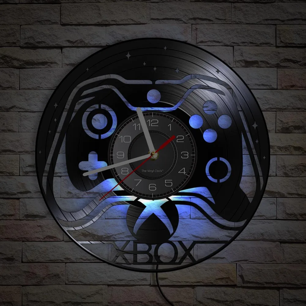Геймпад XBOX, виниловые настенные часы с лазерной гравировкой, яркий игровой контроллер, беспроводной джойстик, настенные часы светодиодный Ной подсветкой, ретро диск, ремесло