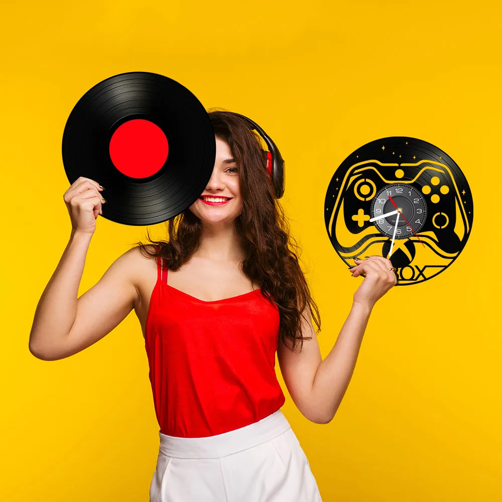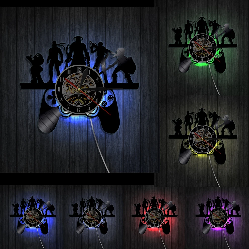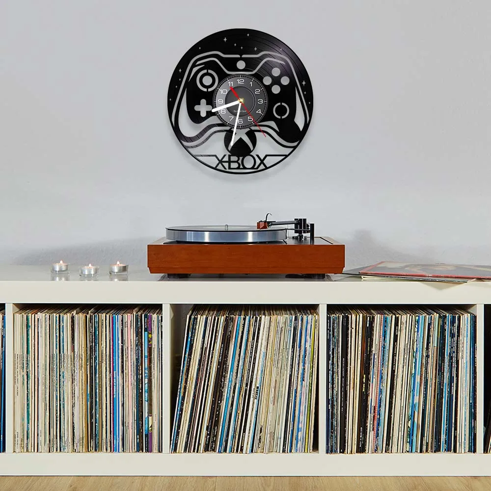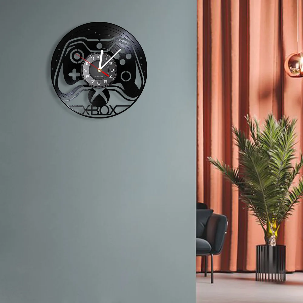 Геймпад XBOX, виниловые настенные часы с лазерной гравировкой, яркий игровой контроллер, беспроводной джойстик, настенные часы светодиодный Ной подсветкой, ретро диск, ремесло