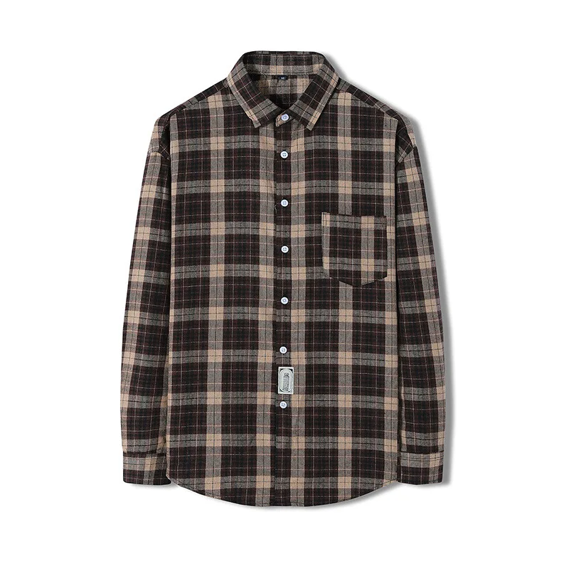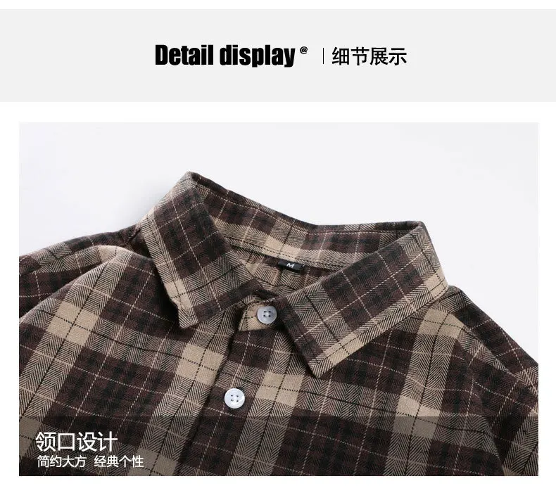 Рубашка мужская в клетку, с фланелевым воротником, весна-осень, 2021