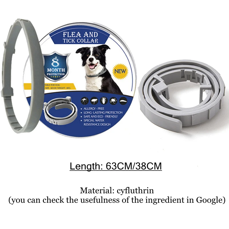 Цвет: серебристыйS:15 дюймов (38 см)M: 24,5 дюйма (62 см) Для собак: старше 7 недель, вес более 12 фунтов (5 кг) Функция: убивает блох, отталкивает и убивает клещей-если клещ отталкивается или убивается, он не может прикрепить и передать организмы, которые могут вызвать болезнь.