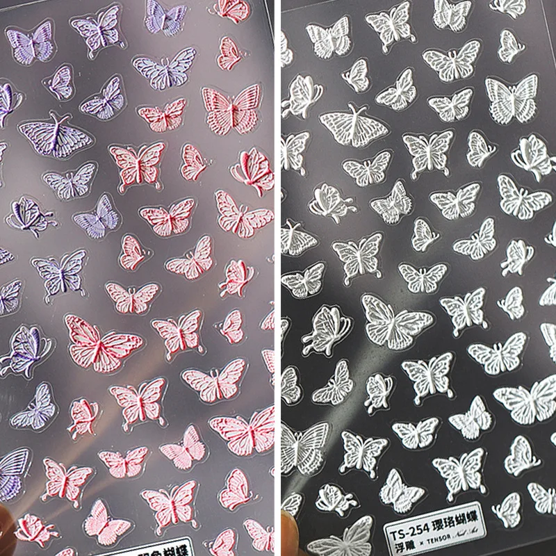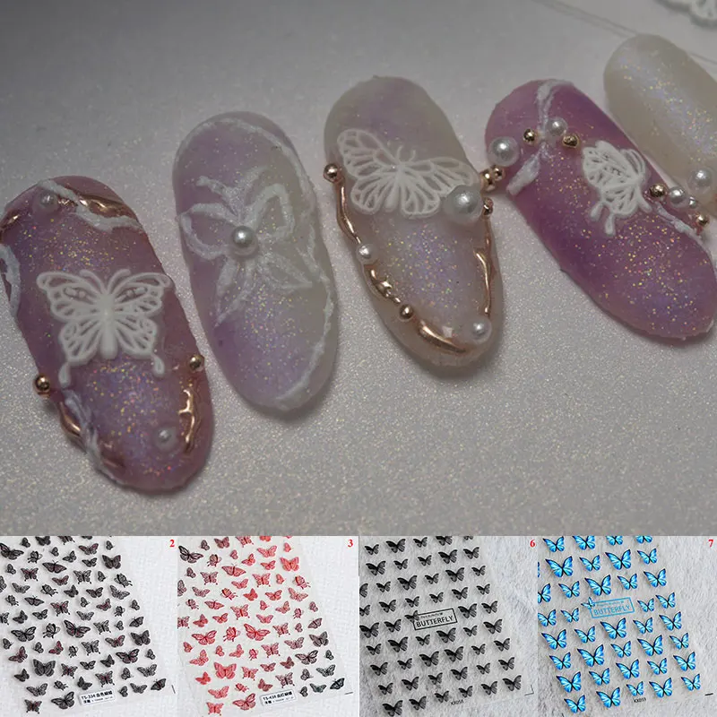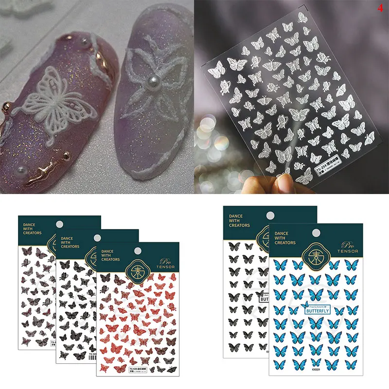Рельефный дизайн 5D, кружевные наклейки для ногтей с бабочкой, самоклеящаяся фольга для ногтей с цветком розы, наклейки для ногтей для маникюра, украшения для ногтей