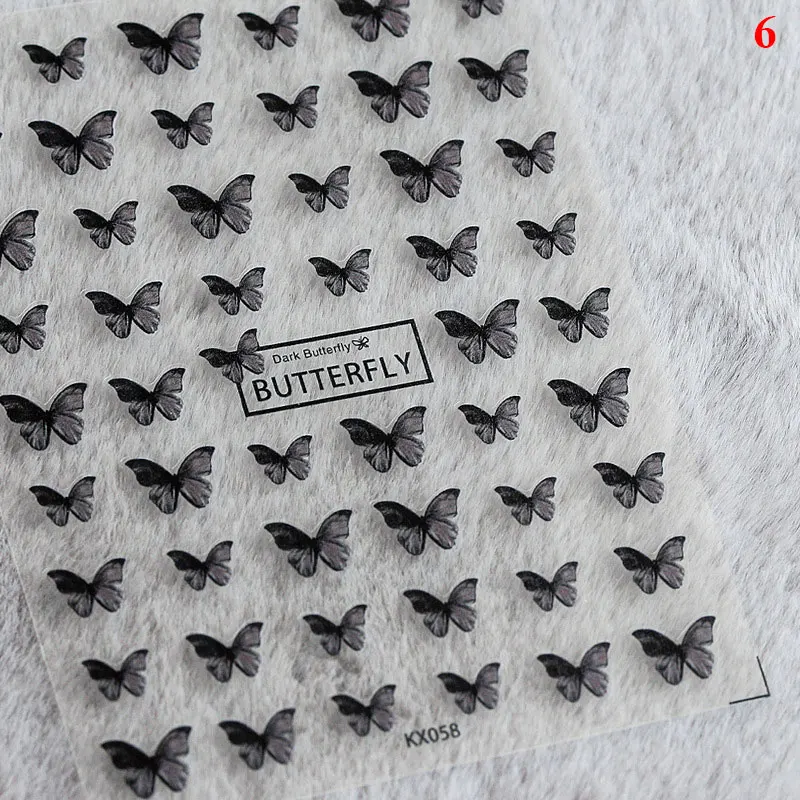 Наклейка для ногтей, черная и синяя бабочка, 3D, самоклеящаяся, уль...