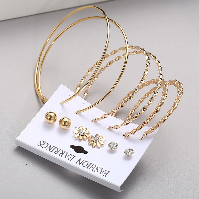 6 паркомпл. серьги в форме хризантемы для Для женщин инкрустированные Стразы преувеличенный Большой Круг Хооп Серьги, Ювелирные Наборы