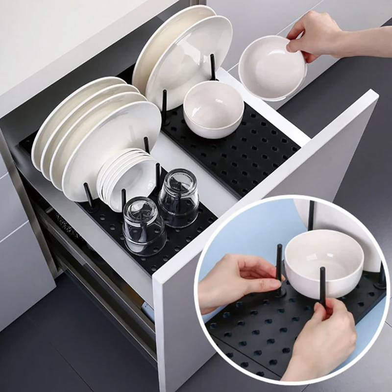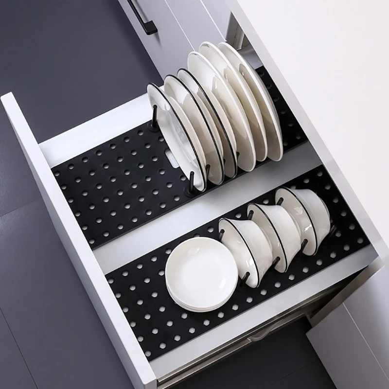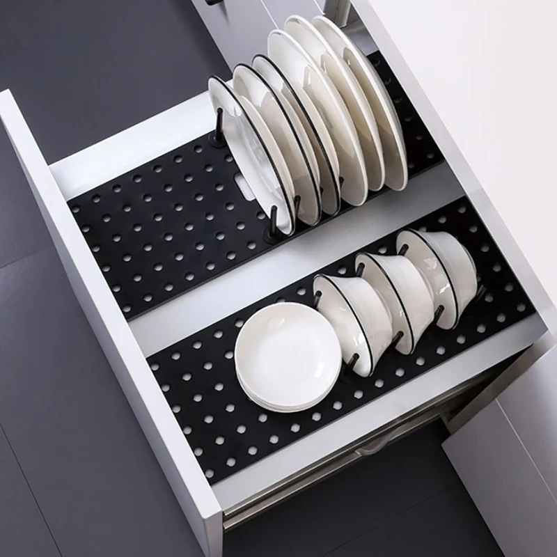Кухонная полка-органайзер телескопическая спутниковая тарелка, сушилка для тарелок, чашек, крышек, держатель для хранения, регулируемая кухонная сушилка для посуды