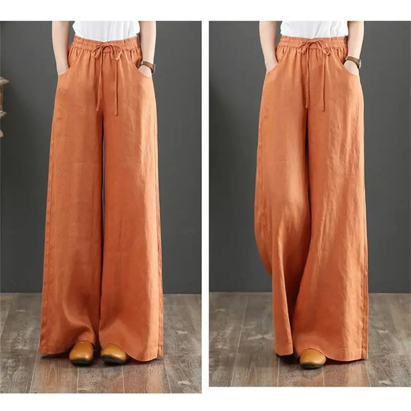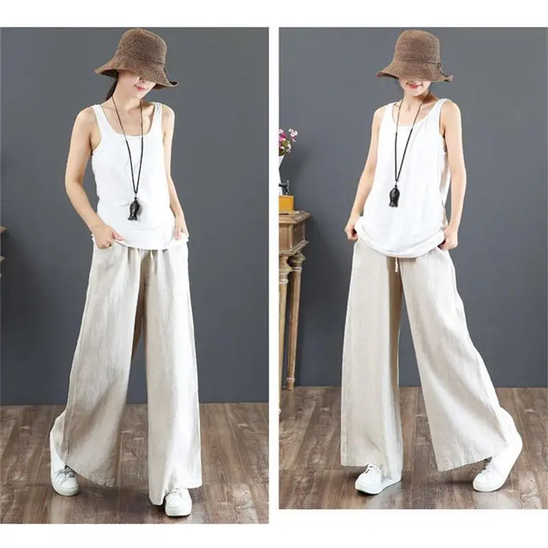 Женские широкие брюки из хлопка и льна, прямые брюки с завязками и широкими штанинами для лета штаны для ежедневной носки, 2021