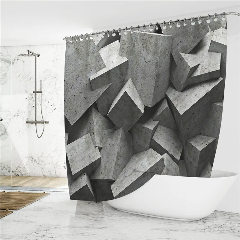3D серого цвета из камней правильной геометрической формы душ Шторы s ткань Водонепроницаемый Ванная комната Шторы продлить домашний отель декоративный Шторы s плотные Экран