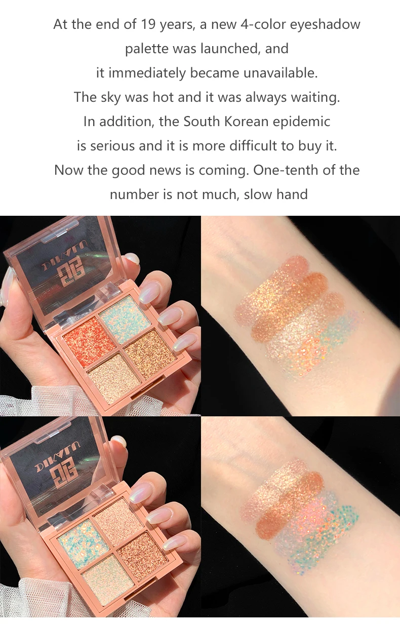 Палитра теней для век, 4 цвета, матовая текстура, мерцающие перламутровые водостойкие стойкие тени для век с блестками насыщенного цвета, макияж для глаз