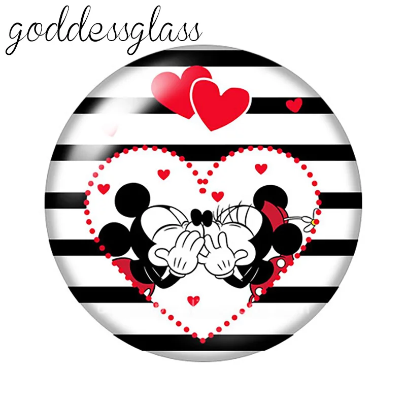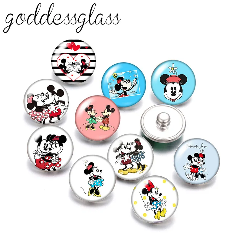 Disney Микки и Минни Маус любовь пара 10 шт. круглый фото стекло 18 мм кнопки для 18 мм Оснастки браслеты ювелирные изделия