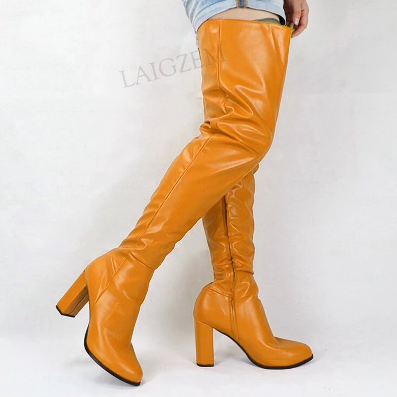 Женские высокие сапоги до бедра SEIIHEM из искусственной кожи, на м...