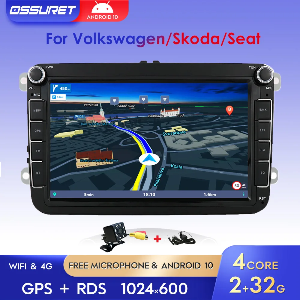 2 + 32 Android 10 Автомобильный мультимедийный радиоплеер для VWVolkswagenPoloGolfPassatb7b6SEATLeonSkoda 2 DIN 8 ''стерео-навигатор