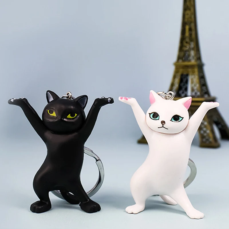 Брелок для ключей с танцующей кошкой, мультяшный котенок, украшение для сумки, женский, смешной дизайн, подарок на день рождения для девочек