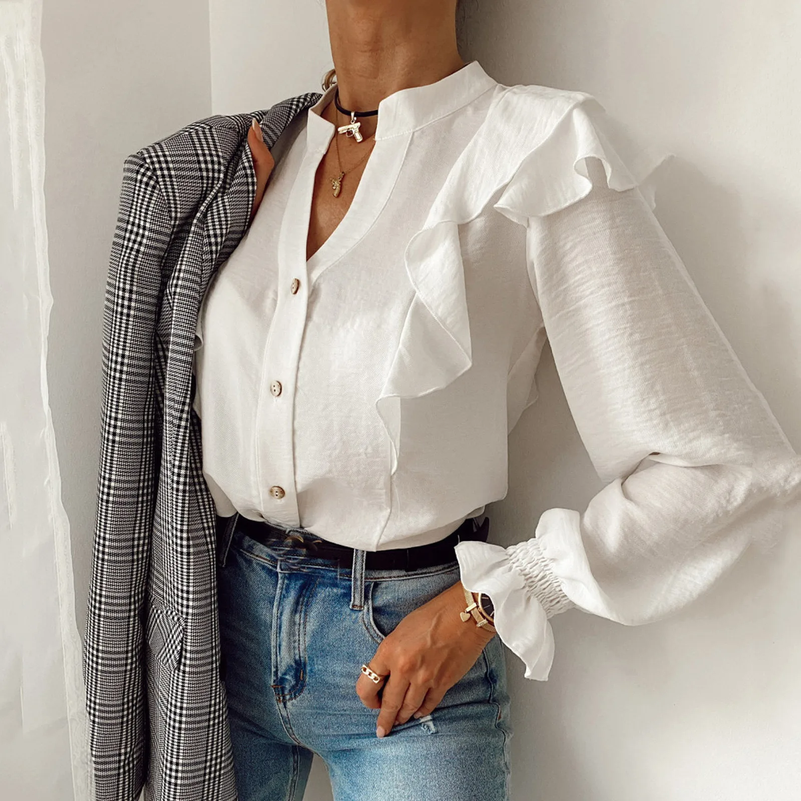 Офисные рубашки для женщин Blusas Mujer De Moda 2021, женские модные повседневные рубашки с длинным рукавом и принтом на пуговицах, v-образный вырез Рубашки, Топы, блузки