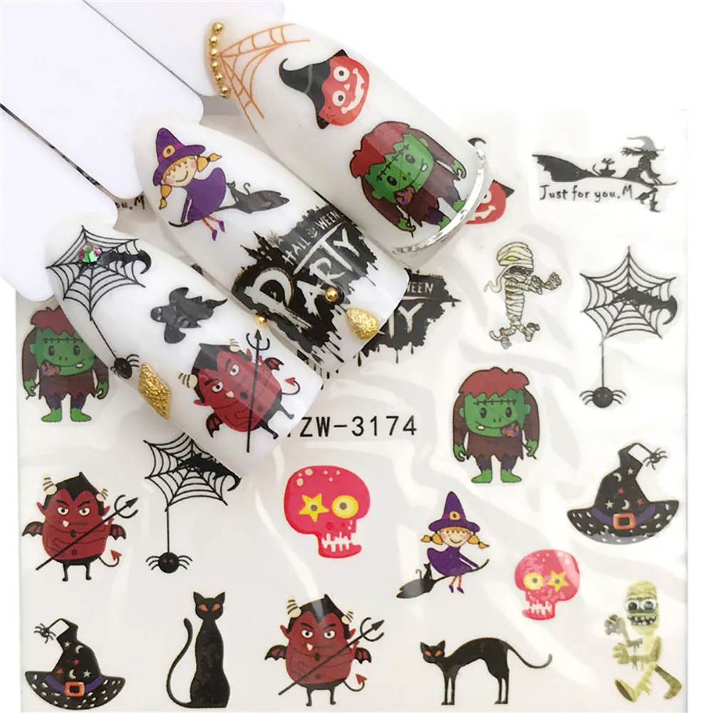 Переводные переводные наклейки Снежинка наклейки для ногтей с бантом накладки для ногтей кленовый лист все для маникюра Пингвин Хэллоуин наклейки для дизайна ногтей