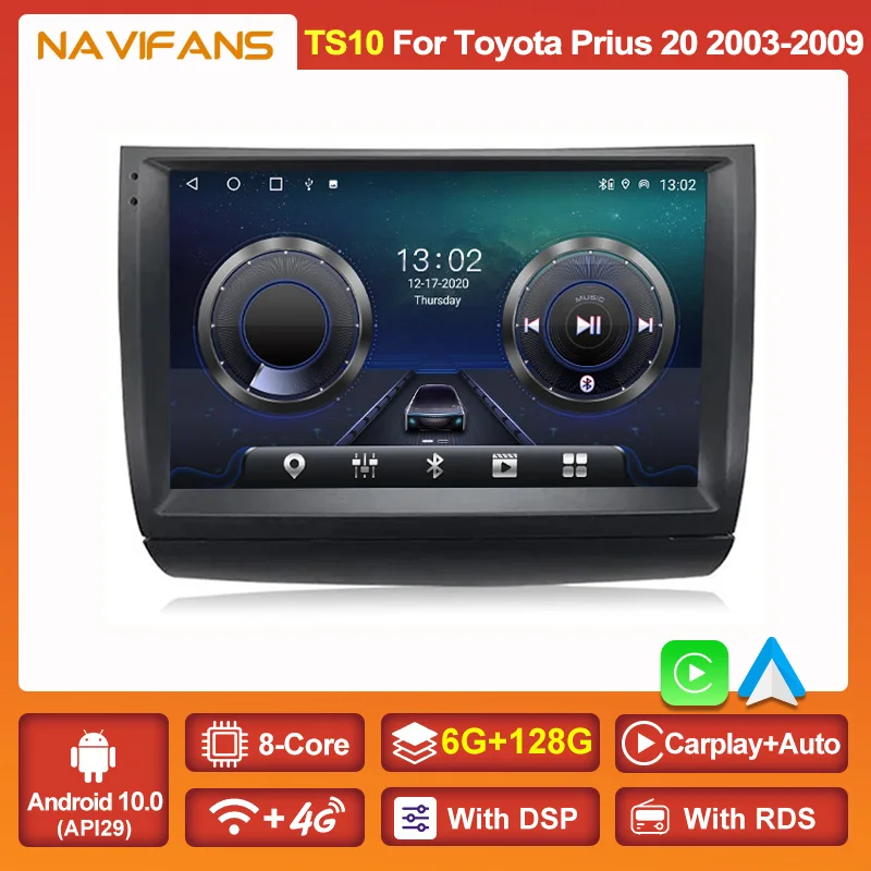 Автомобильный мультимедийный радиоприемник, 6G + 128G, Android 11, Carplay, для Toyota Prius 20 2003-2009, GPS, стерео, DSP, RDS, FM, Wi-Fi, 4G LTE