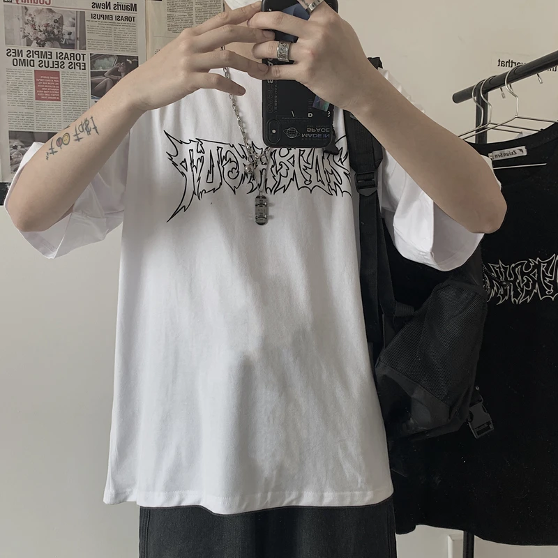 Эстетическое готика, Харадзюку футболка с коротким рукавом и принто...