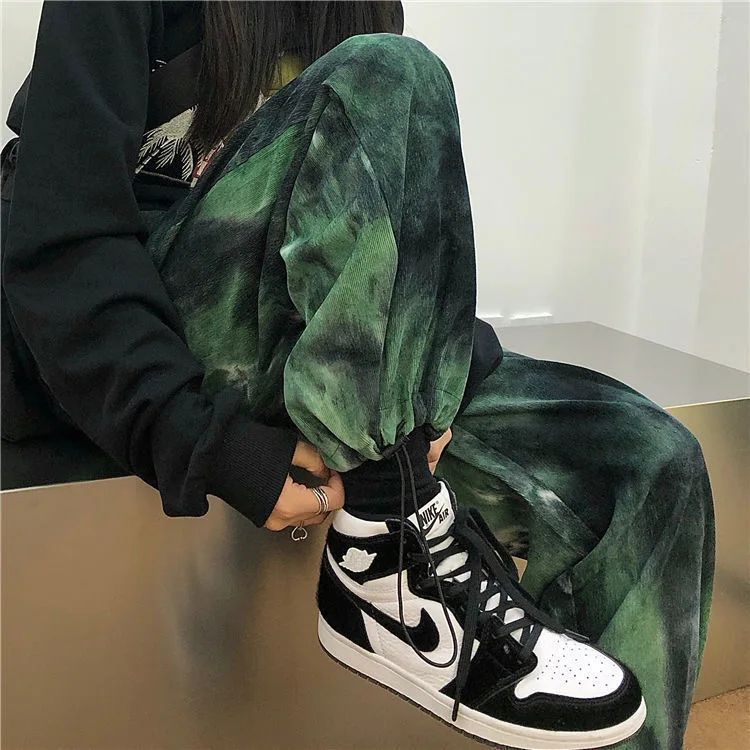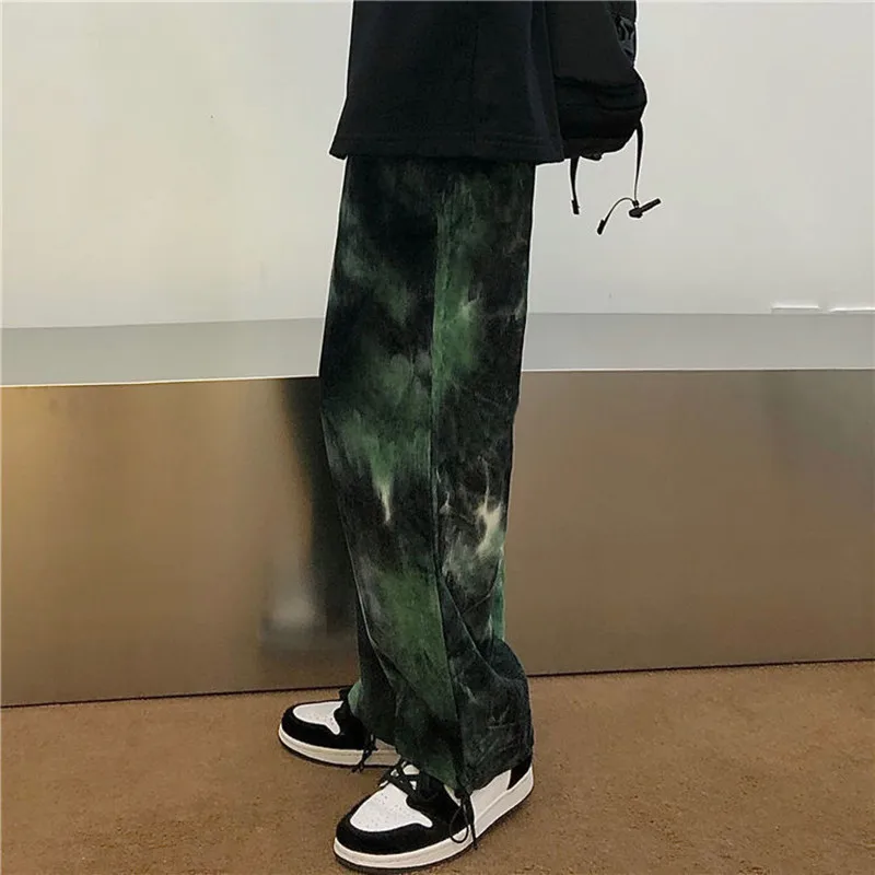 Брюки мужские вельветовые в стиле хип-хоп, модные повседневные Прямые штаны свободного покроя в стиле ретро, уличная одежда в Корейском стиле, с широкими штанинами, галстук-краска для брюк, M-2XL