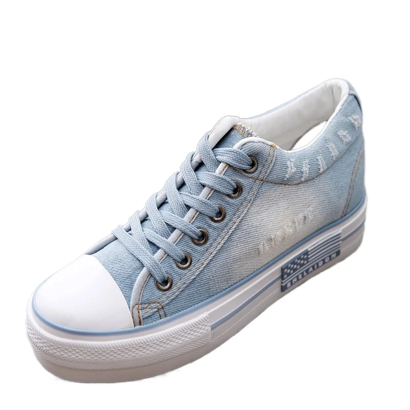 Женская Вулканизированная обувь; Парусиновая обувь на платформе; Визуально увеличивающая рост дышащая женская повседневная обувь; Студенческие кроссовки на шнуровке; Женская обувь на плоской подошве