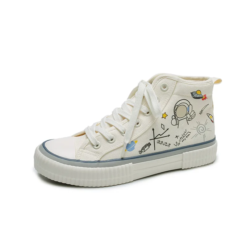 Повседневная обувь; Женская новая парусиновая обувь с рисунком; Спортивная обувь с высоким берцем на шнуровке; Вулканизированная обувь; Модная обувь на плоской подошве; Женские кроссовки
