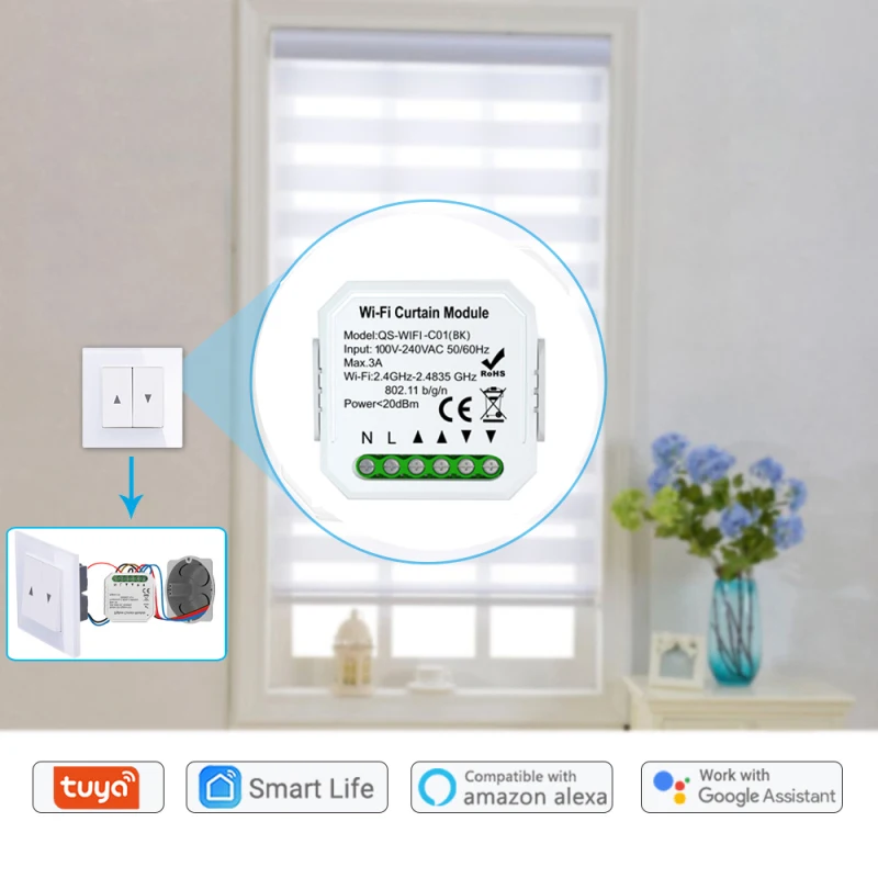 Переключатель для штор Tuya Smart Life, Wi-Fi, голосовое управление