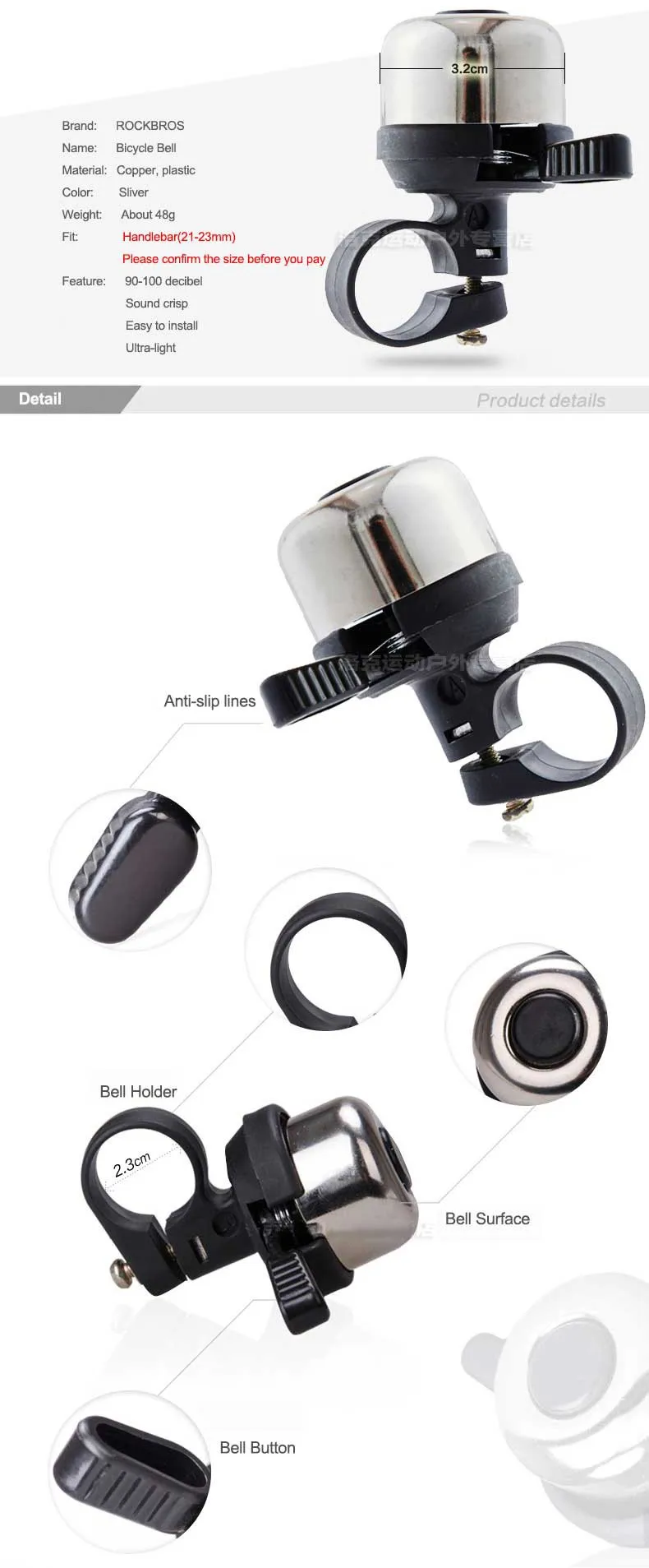 Звонок велосипедный Rockbros классический, колокольчик на руль, звуковой сигнал для горного и дорожного велосипеда, Аксессуары для велосипеда