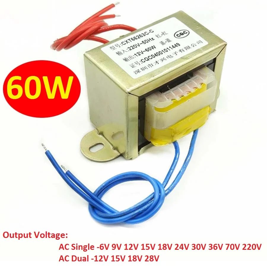 Трансформатор мощности EI66 60 Втва, вход переменного тока 220 В380 В 50 Гц, выход переменного тока, одиночныйдвойной 6 В, 9 В, 12 В, 15 В, 18 В, 24 В, 30 В до 220 В, медь ядро