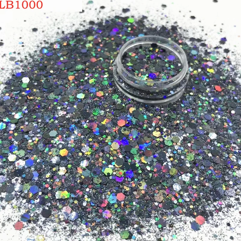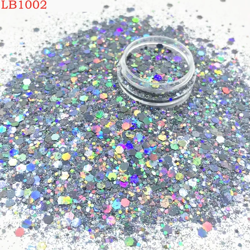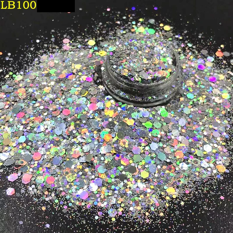 1 горшок голографический массивный смешанный Алмазный блестящий серебристый блестящий порошок тумблер для губ волосы лицо тело тени для век Блеск для ногтей A018(1 г)