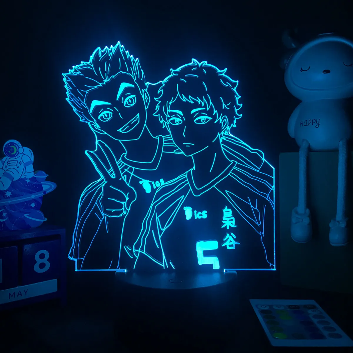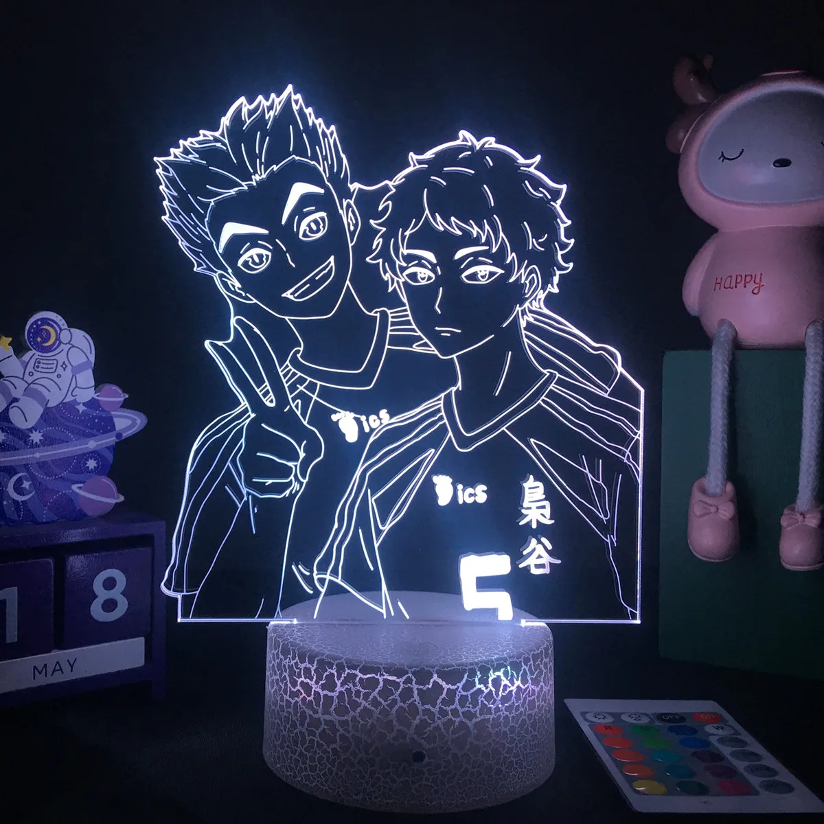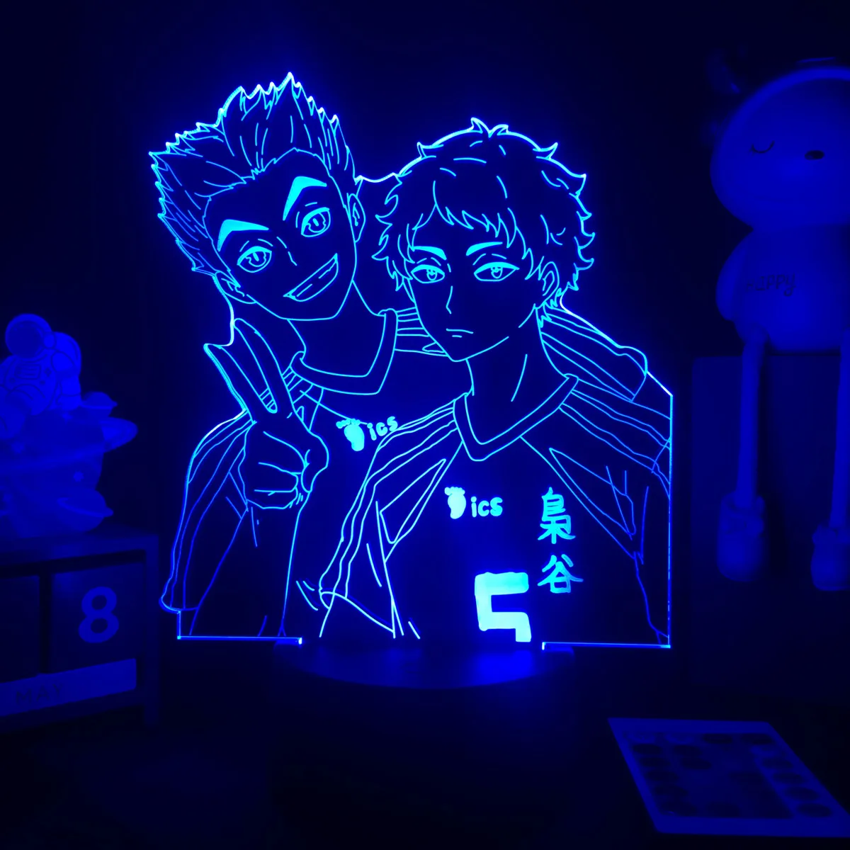 Лампа аниме 3D Haikyuu! Декоративный светильник для детской спальни, Bokuto Koutarou и Akaashi Keiji, цветная прикроватная лампа RGB
