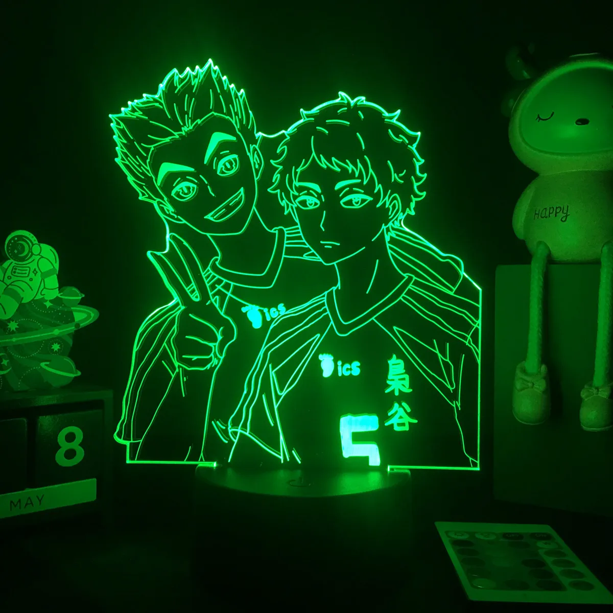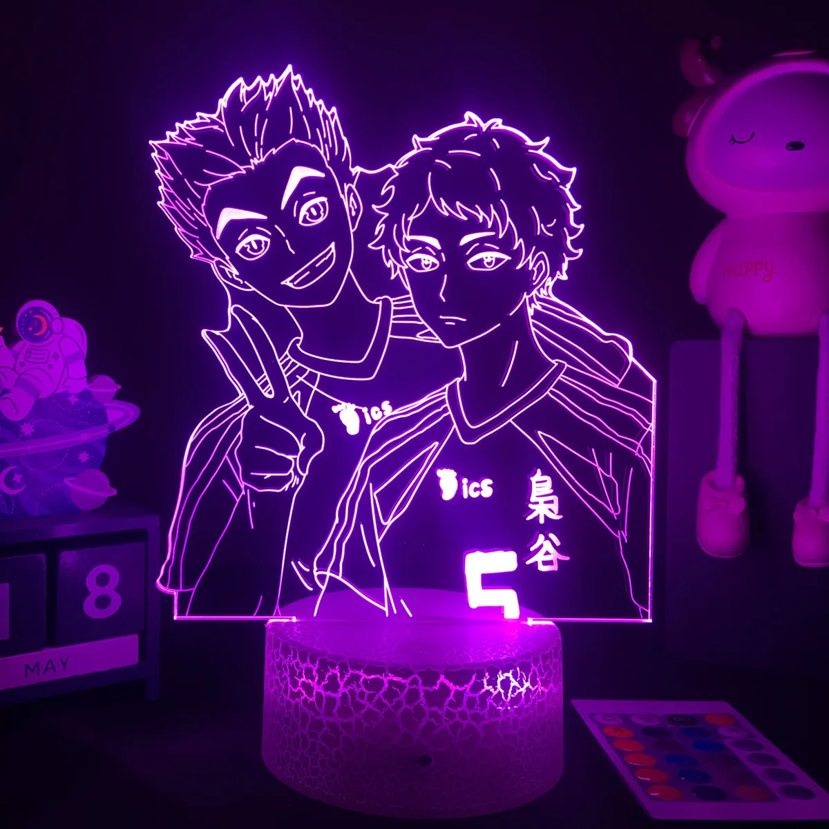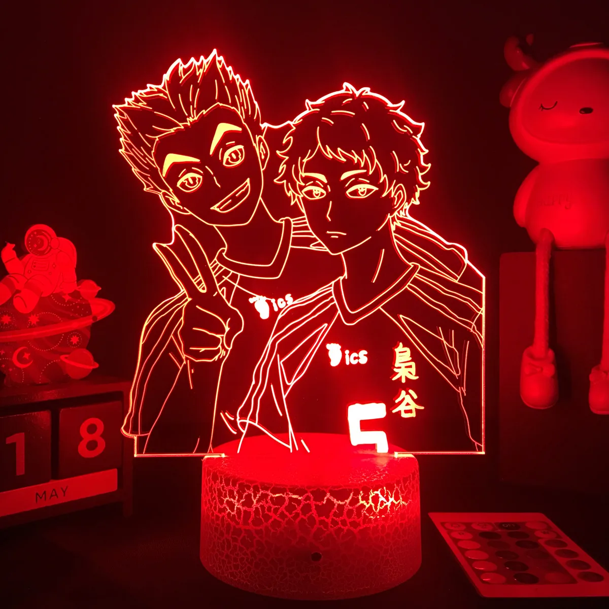 Лампа аниме 3D Haikyuu! Декоративный светильник для детской спальни, Bokuto Koutarou и Akaashi Keiji, цветная прикроватная лампа RGB