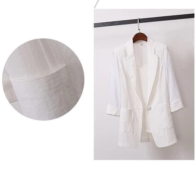 Блейзер Женский из тонкого хлопка и льна, свободная однотонная офисная верхняя одежда, пальто, лето